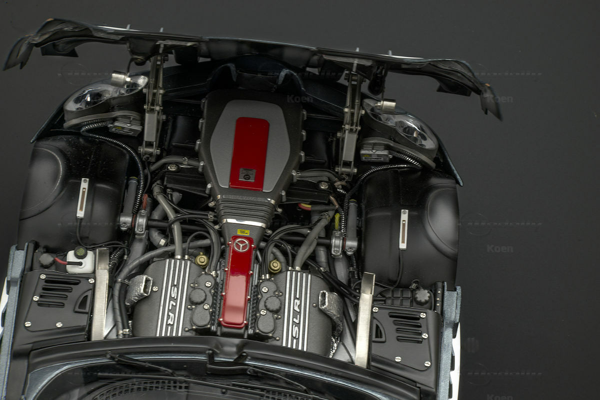 Exakte Nachbildung des kompletten Mercedes-AMG-V-8-Kompressor-Motors mit allen Anbauaggregaten sowie detaillierten weiteren Einzelteilen und Features
