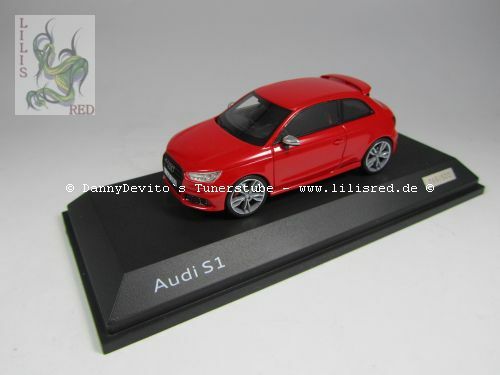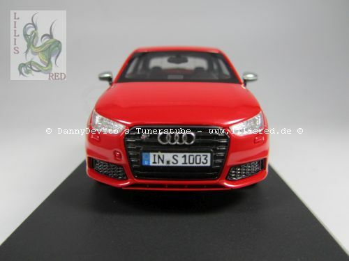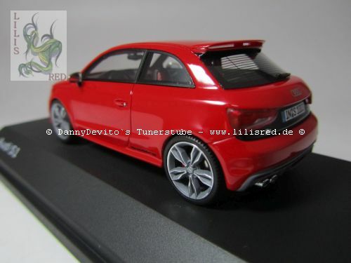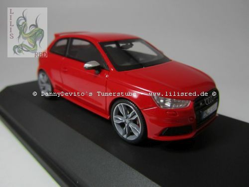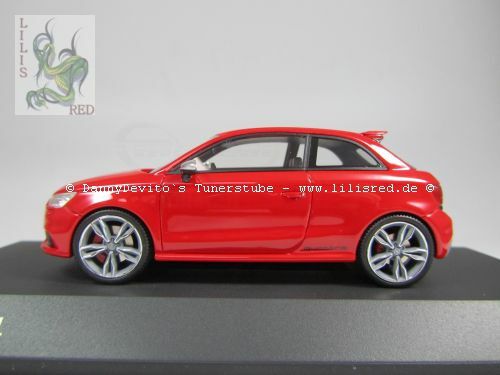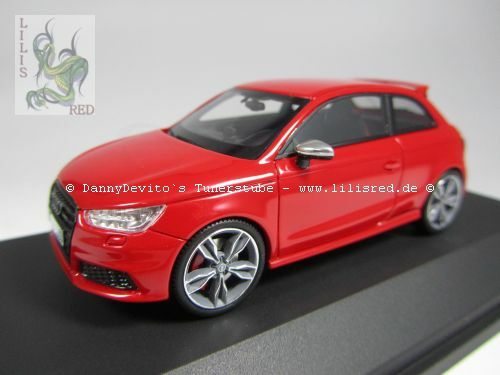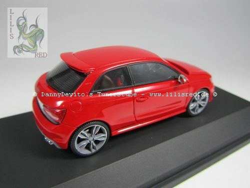 This 1/43 scale model car was manufactured by Premium ClassiXXs and is a precise replica of the Audi S1 Three-Door Facelift (8X). Made of diecast material, the model impresses with its high level of detail accuracy and precise craftsmanship. The vibrant red paint captures the sporty elegance of the original perfectly. At the front, the model features faithfully replicated headlights and the distinctive Audi grille. This collector's version is part of the collection of Modelly member "Lilisred" and is presented on a black base bearing the name "Audi S1."