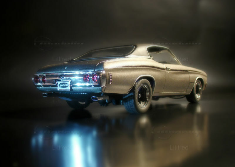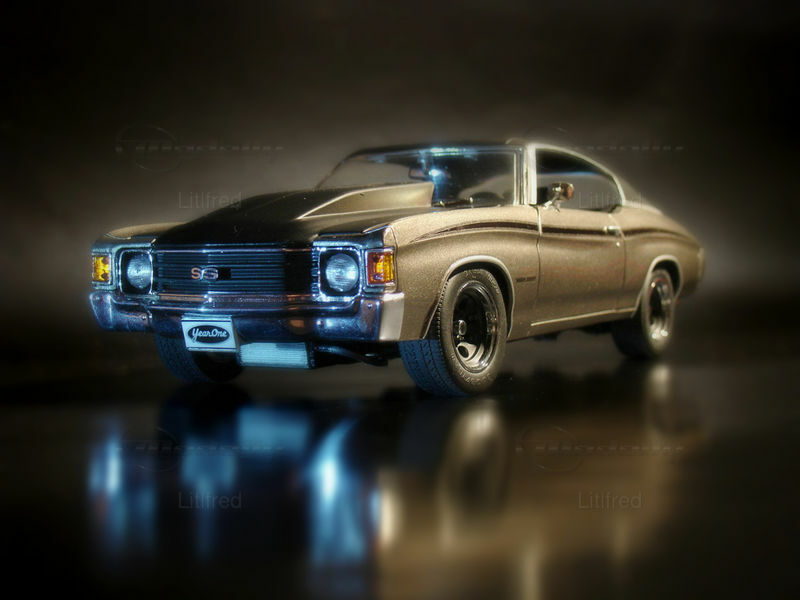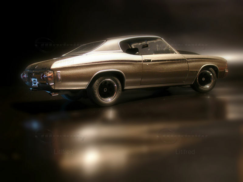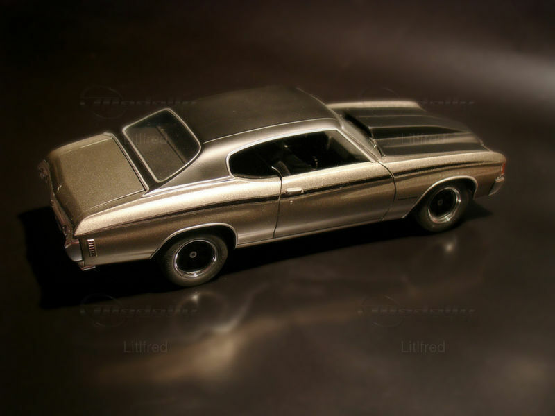 The model shown here is based on a Chevrolet Chevelle Heavy Chevy and showcases the features of this classic car in 1/18 Scale. Originally produced by Maisto, the piece displayed here has been modified by Modelly member "Litlfred." It does not represent the exact product produced by Maisto but exemplifies the detailed execution and specific modifications cherished by model car enthusiasts worldwide.