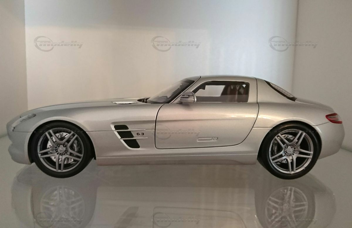 Owned by Modelly member "LuxuryVJ," this 1/18 scale model of the Mercedes-Benz SLS AMG represents a valuable and beautiful piece of their collection. The meticulous craftsmanship and attention to detail make this model a real highlight for car model collectors. The use of diecast as the model material not only provides considerable weight and high-quality tactile feel but also ensures outstanding durability. The model is crafted to bring the elegance and powerful design of the original into collectors' homes in miniature form. Each individual component, from the precise paintwork to the fine interior detailing, showcases the high standards applied by Minichamps in creating this model.