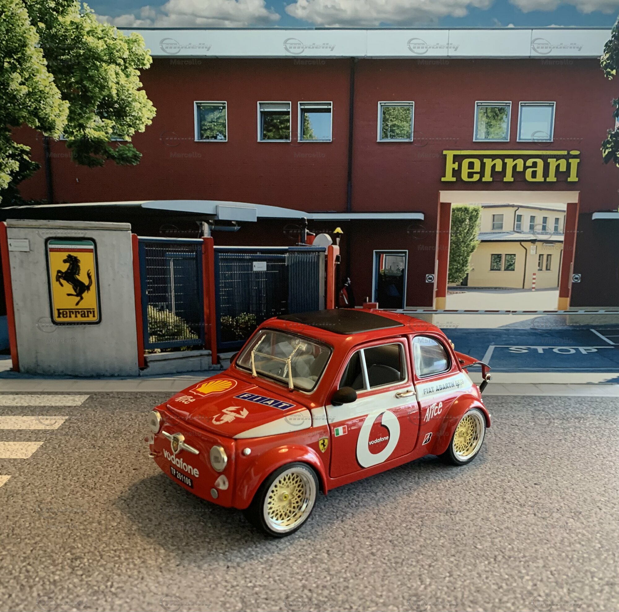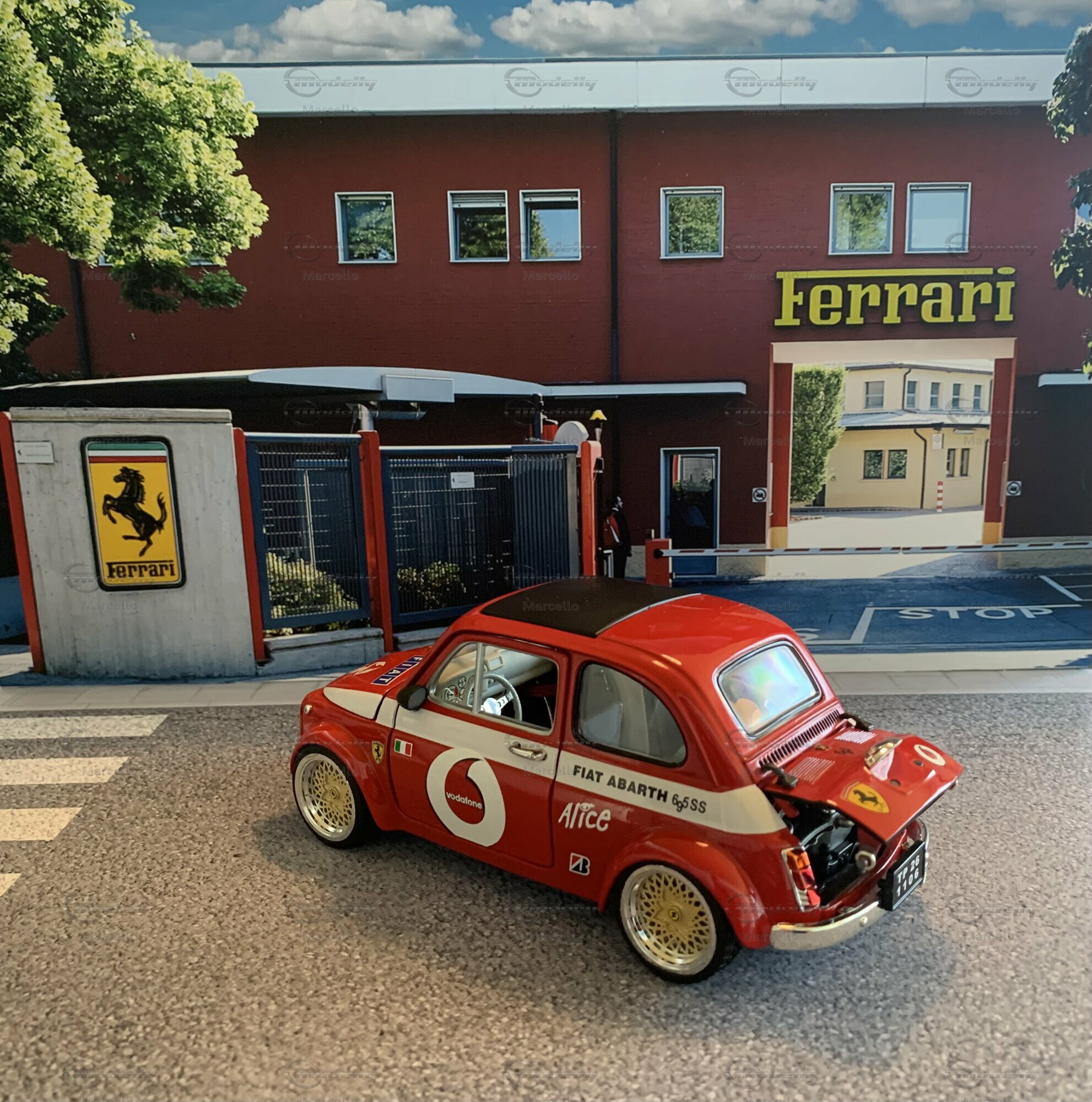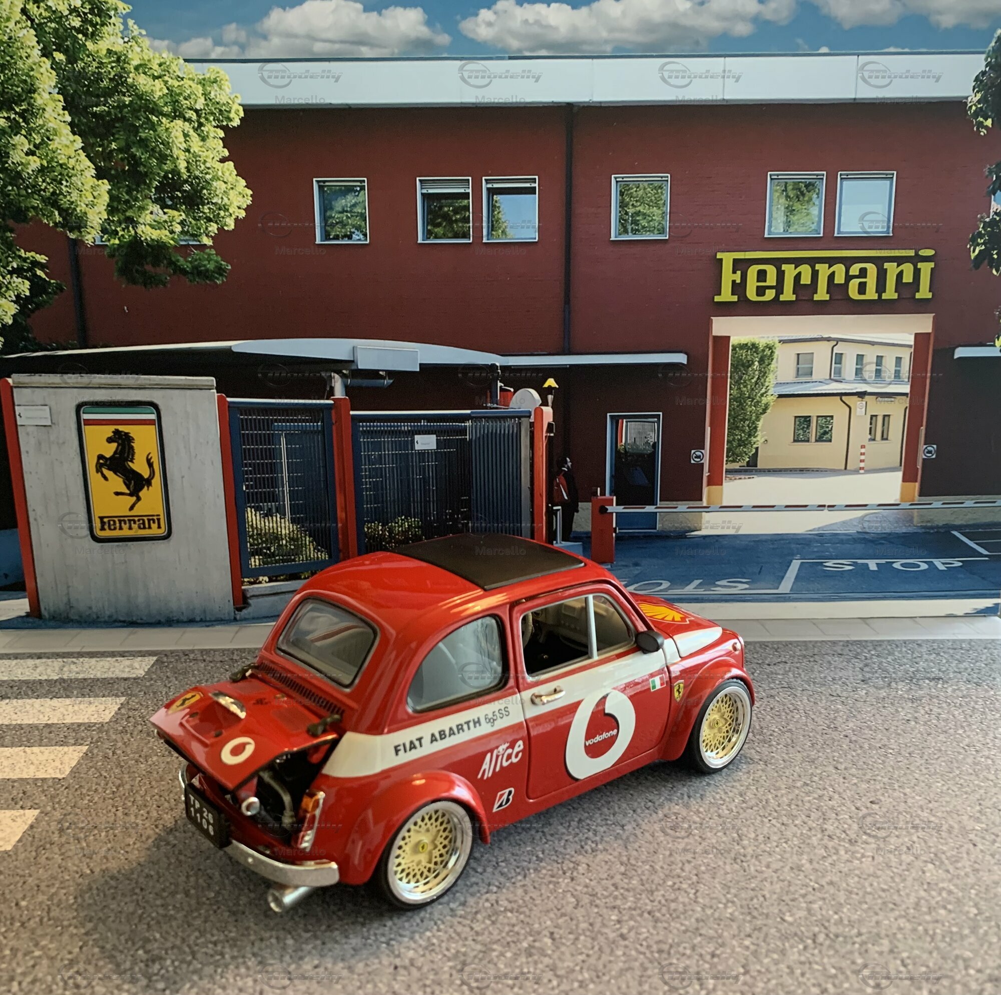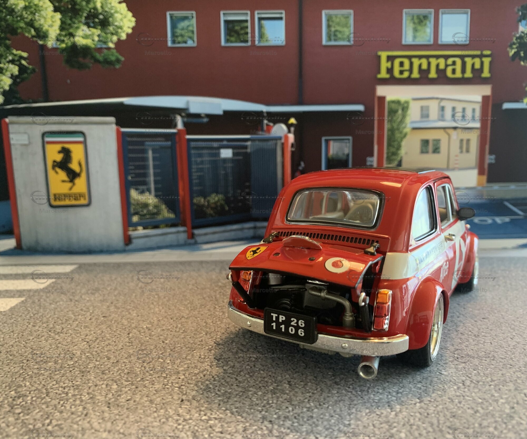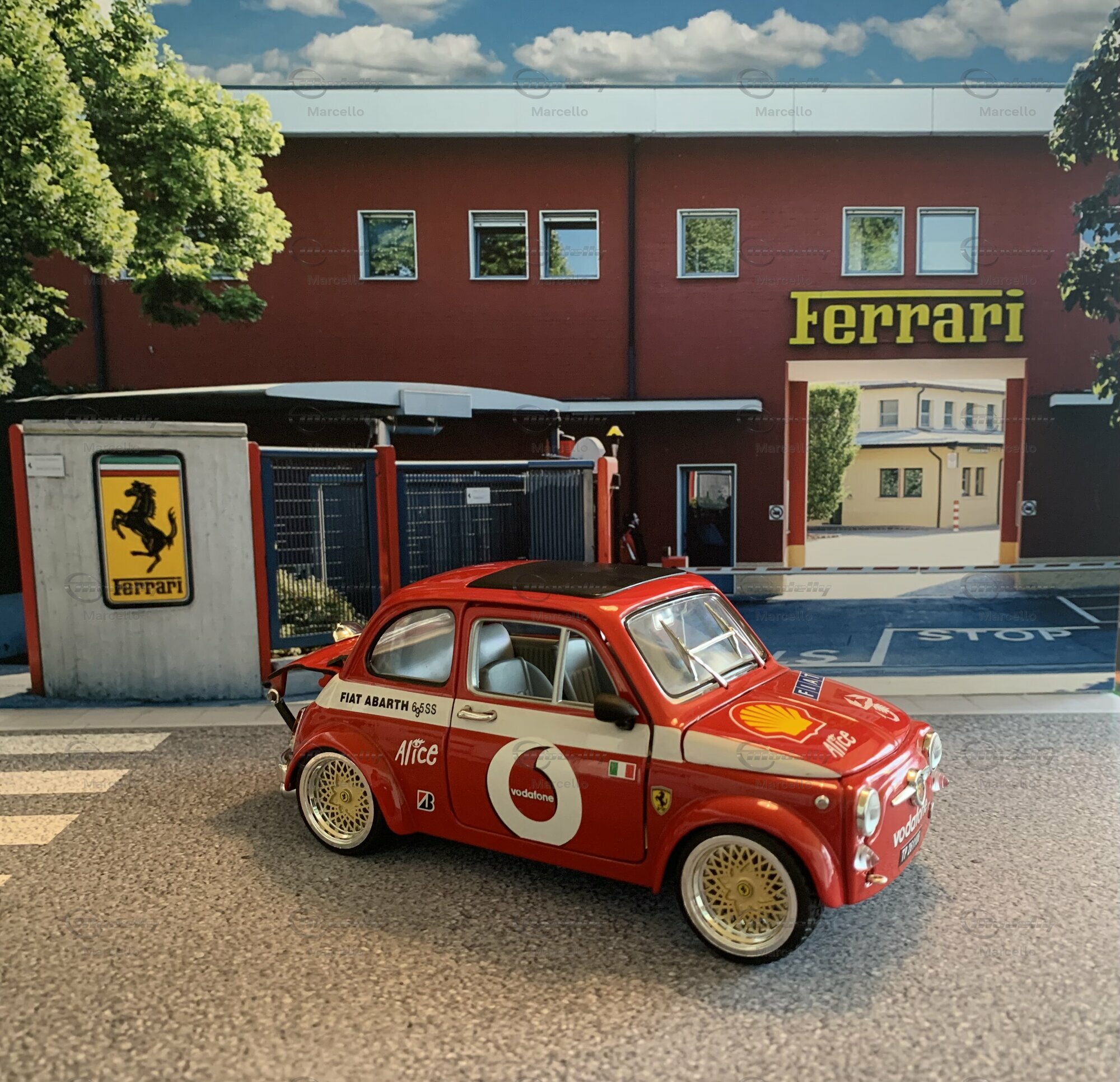 The model car in these pictures is based on the legendary Fiat Abarth 695 SS, which was designed as the sporty version of the Fiat 500. This generation of the Fiat 500, which the Abarth 695 SS is derived from, was produced between 1957 and 1975. The Abarth 695 SS, launched in the early 1970s, was a nod to engineering brilliance, offering a sportier and more powerful alternative. Developed by racing expert Carlo Abarth and his team, this little city car received a serious technical overhaul, including a power boost to around 38 hp and an improved suspension. This allowed the car to reach speeds of up to 140 km/h (87 mph)—pretty impressive for that time!