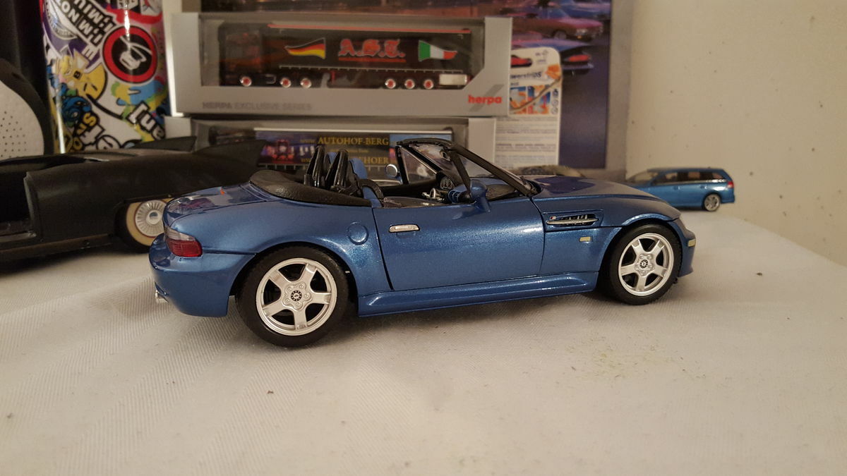 The showcased model has undergone some modifications compared to the originally delivered model from Bburago. In the pictures, it is evident that this 1/18-scale miniature exhibits some details resembling the real BMW Z3 M Coupè, such as the special BBS rims that could be from RWB Japan, a renowned company specializing in manufacturing and modifying auto components. The interior has also been faithfully replicated with realistic seats, steering wheel, and dashboard. For a better grasp of the age of this model: In the production year 1998, the music video "Believe" by Cher was released, and Google's first headquarters opened, providing context for the timeline.