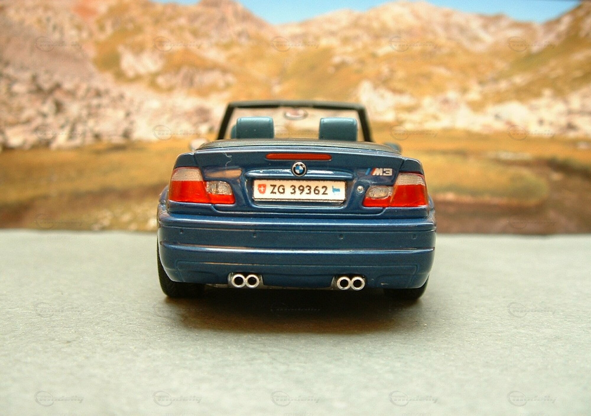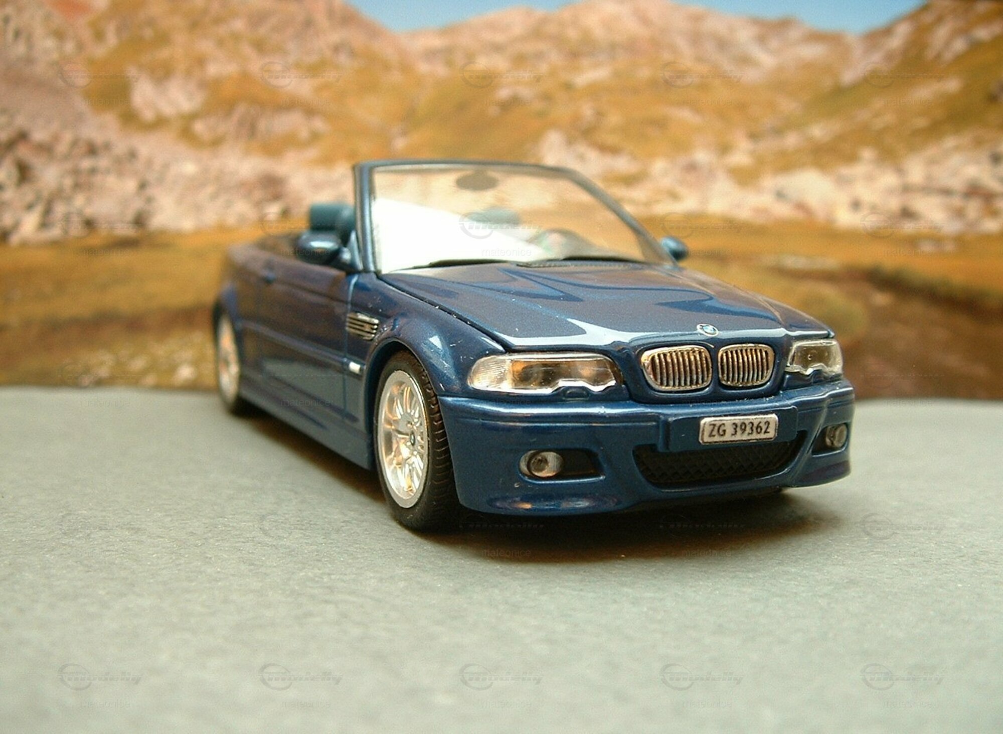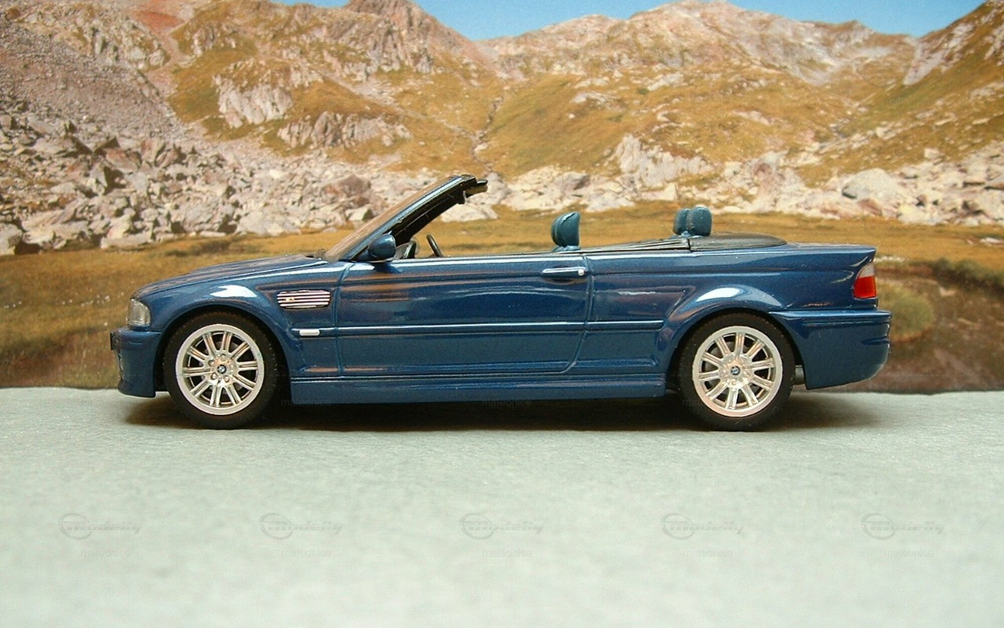 This scale model of the BMW M3 Cabrio (E46) at 1/43 scale, manufactured by Minichamps, showcases many of the distinctive features of the original vehicle. The blue finish of the model is flawlessly applied, reflecting the elegance and dynamism of the original. From the intricately detailed headlights and taillights to the accurately replicated wheels and interior – each component is carefully and authentically represented.Of particular note is the fact that this model displays technically accurate details such as the iconic dual exhausts and slightly flared fenders. Buyers and collectors should be aware that this model is limited, with only 2400 pieces worldwide. This rarity makes the model particularly valuable and coveted among collectors and enthusiasts.