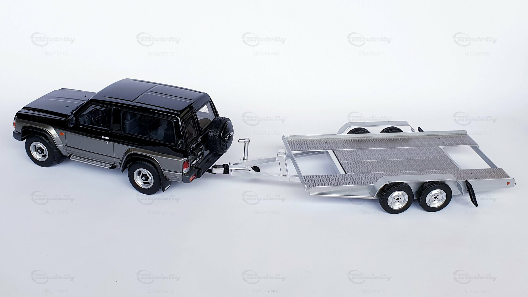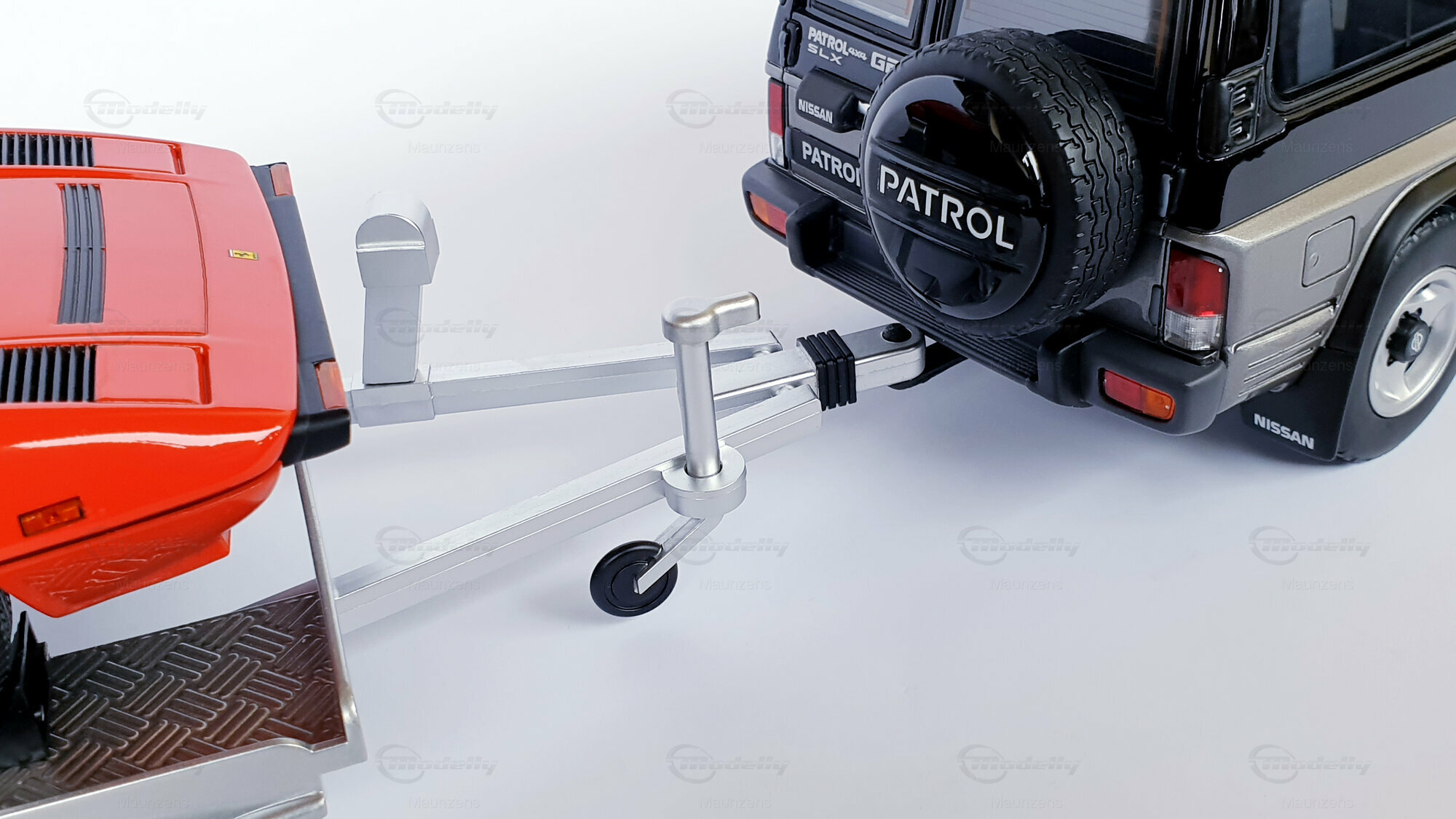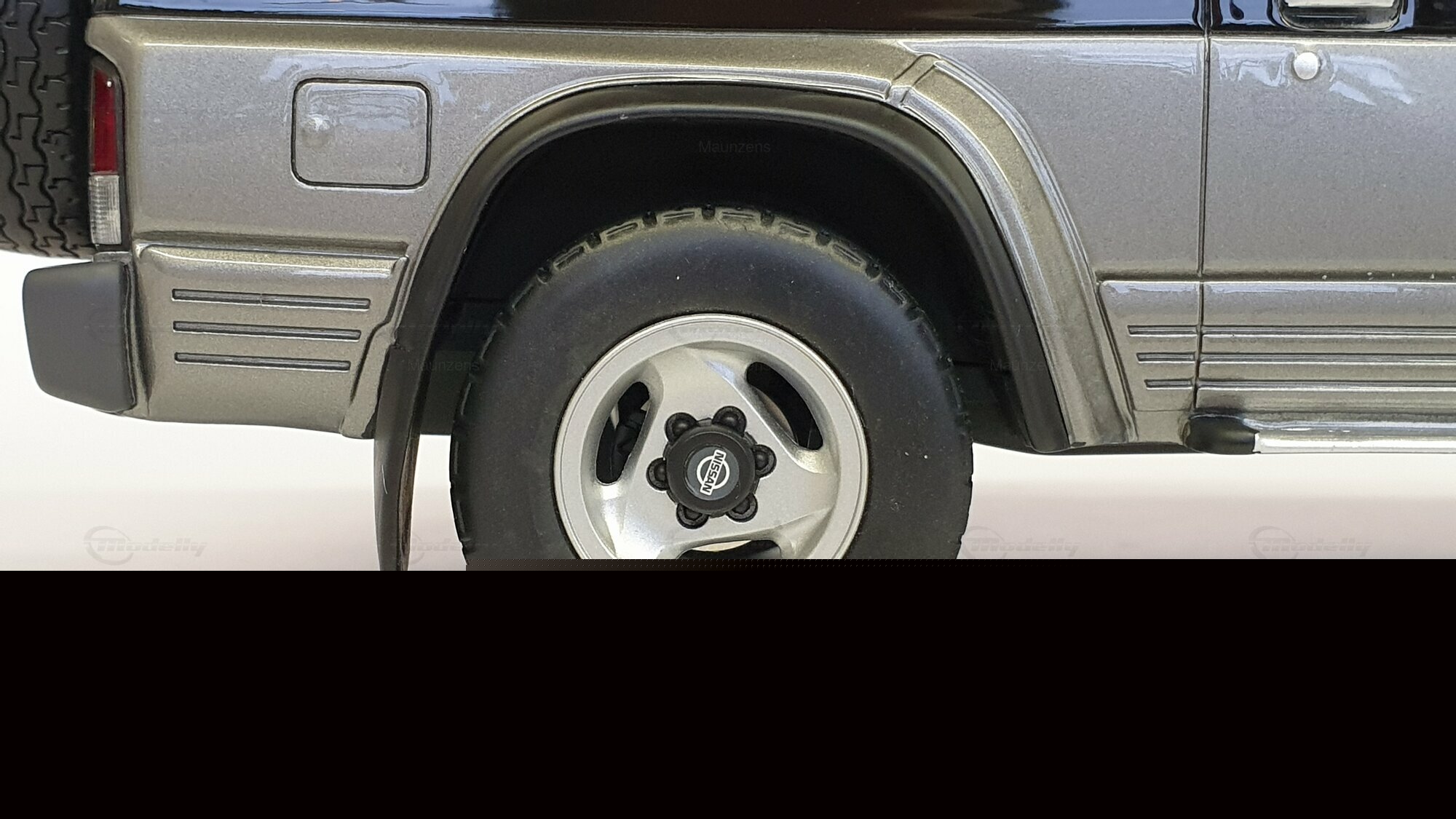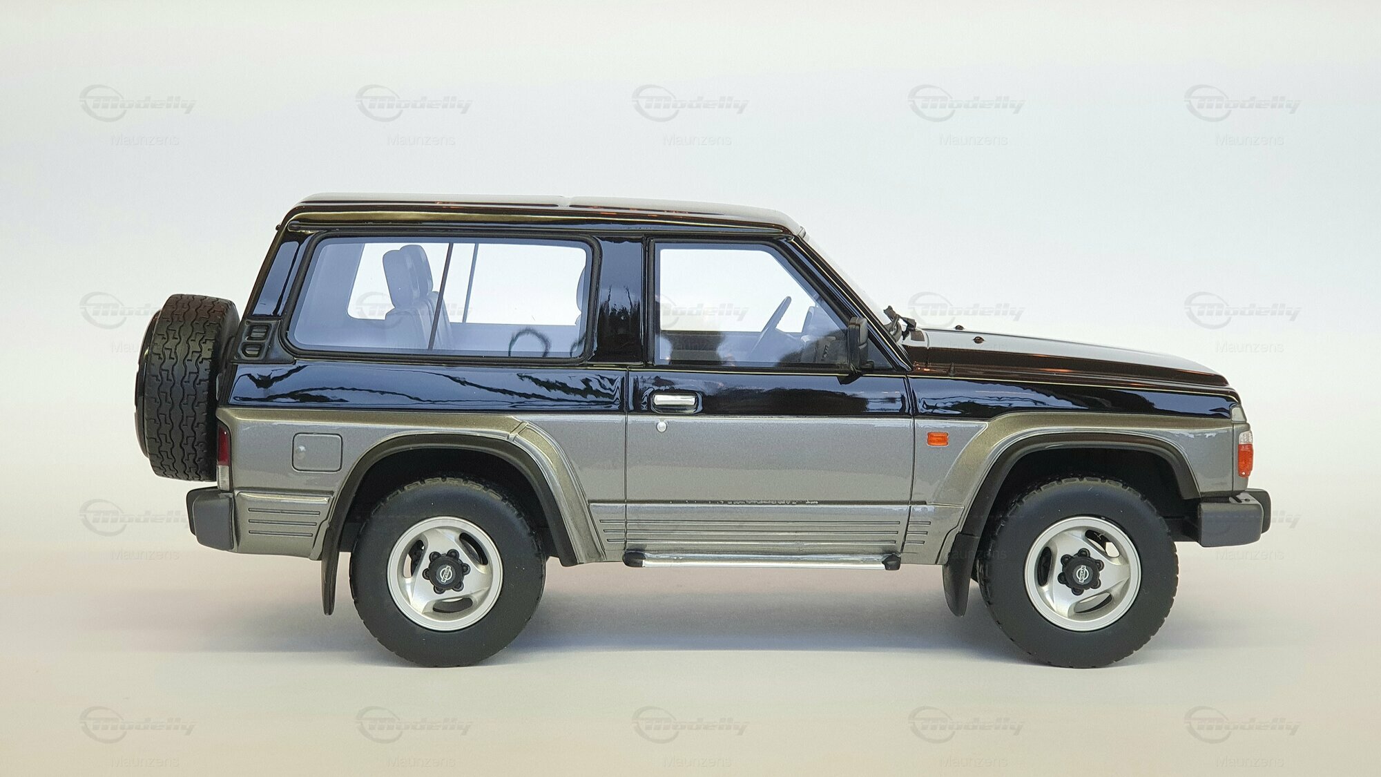 The model car in a scale of 1/18 featured here was manufactured by Ottomobile and is based on the Nissan Patrol GR Y60. This miniature vehicle is crafted from resin, which allows for high detail accuracy and makes the model particularly appealing to collectors. The model is part of the collection owned by Modelly member "Maunzens". From the photos, you can see that the model perfectly captures the classic look of the Y60. Fine details like the Nissan logos, distinctive front headlights, and characteristic ventilation grilles are meticulously replicated. The two-tone paint job comprising elegant black and glossy silver further accentuates the model's authenticity.