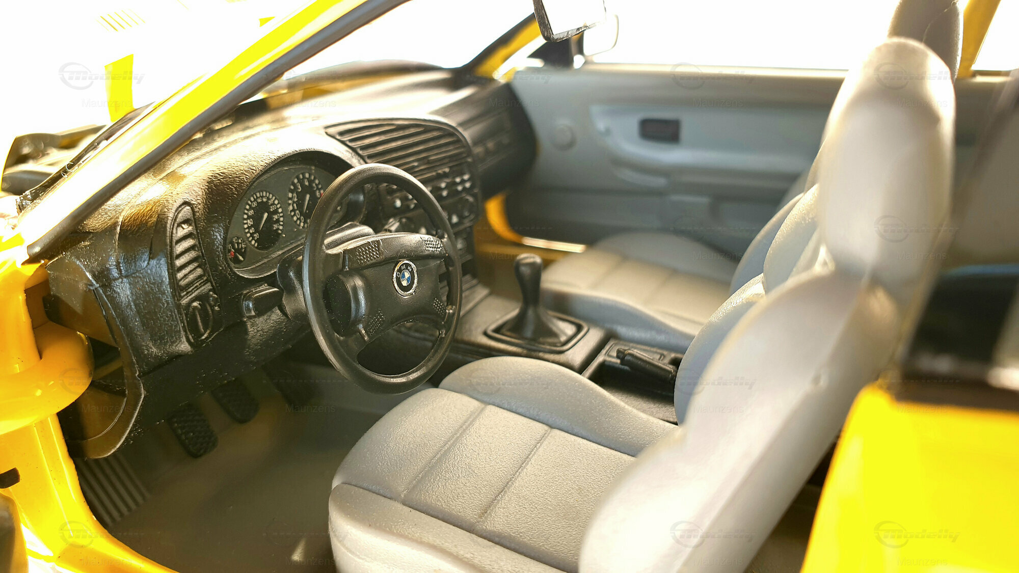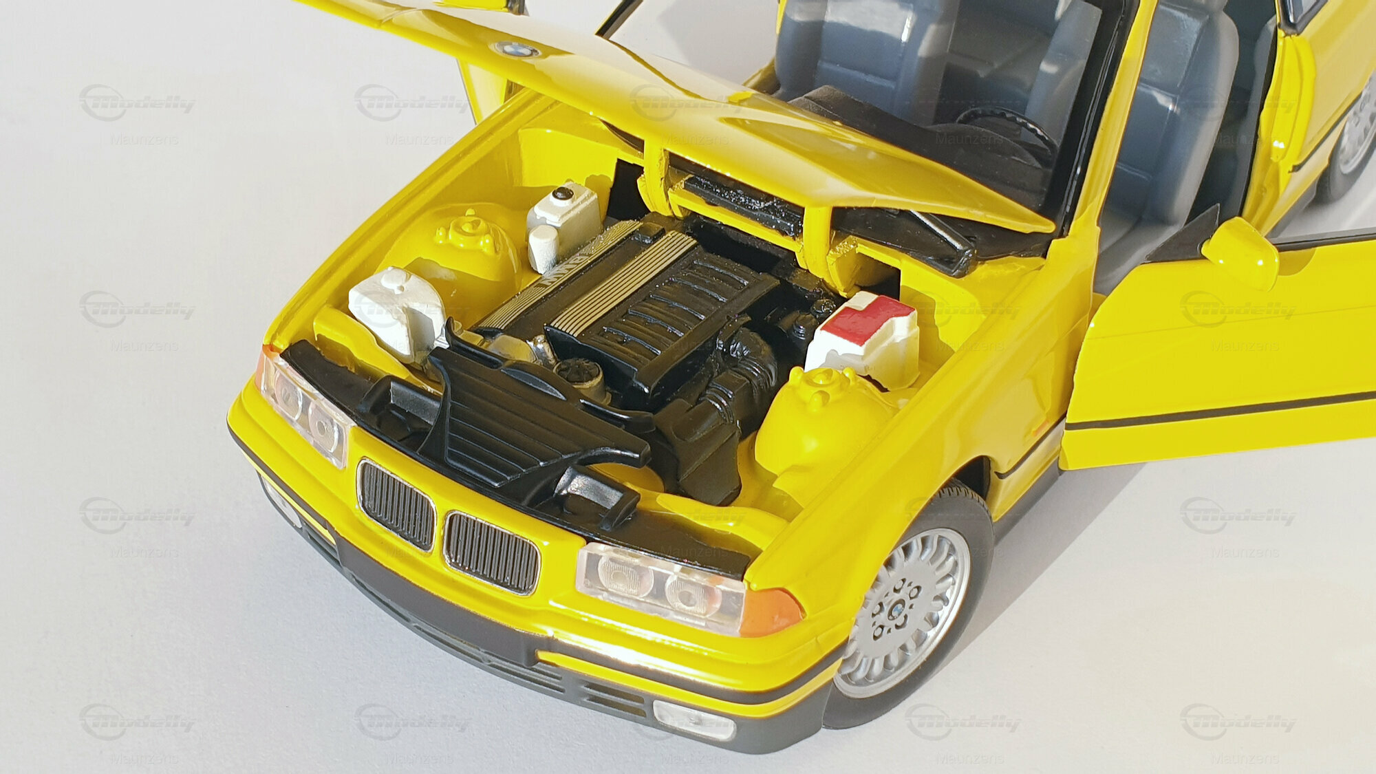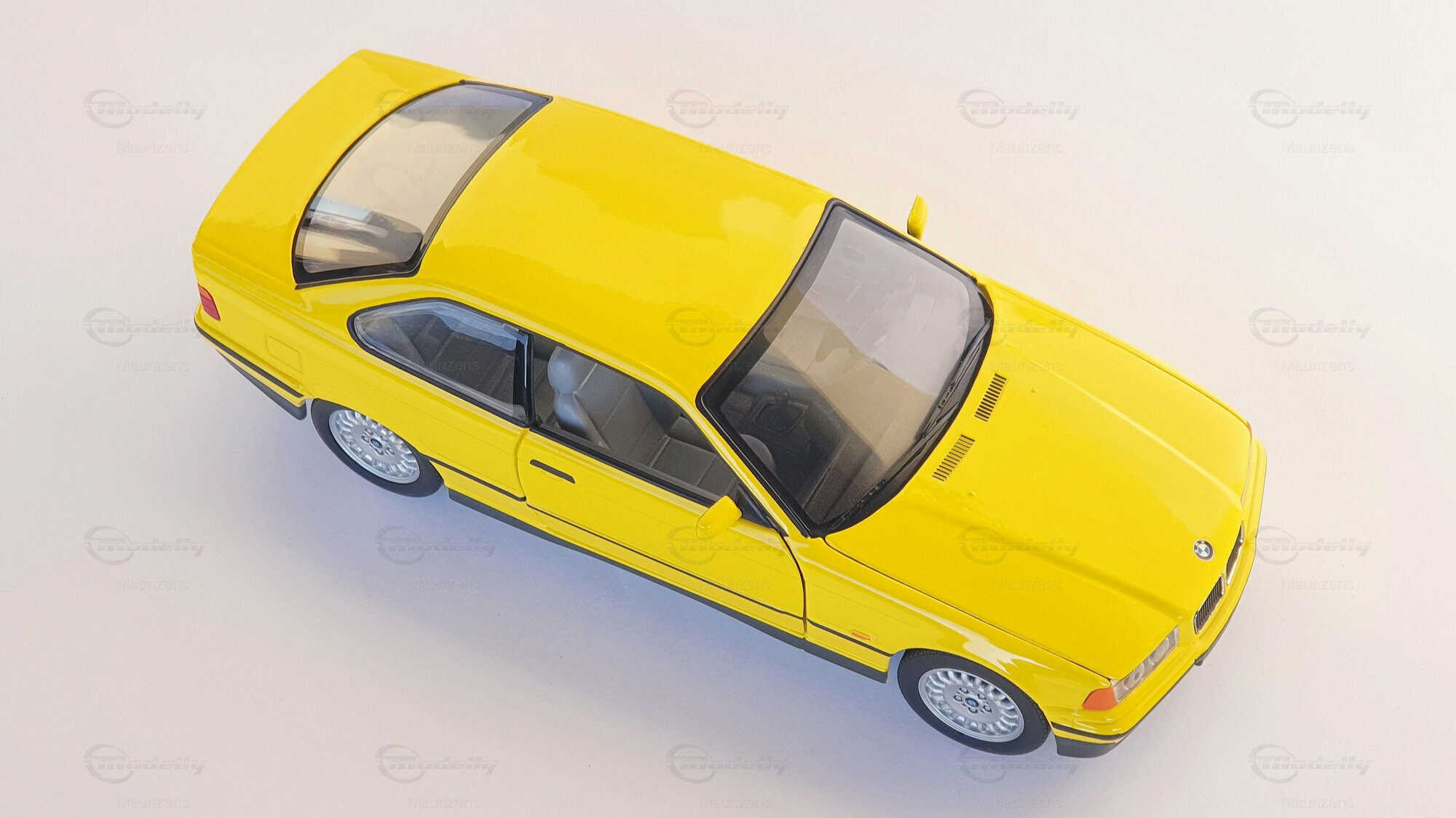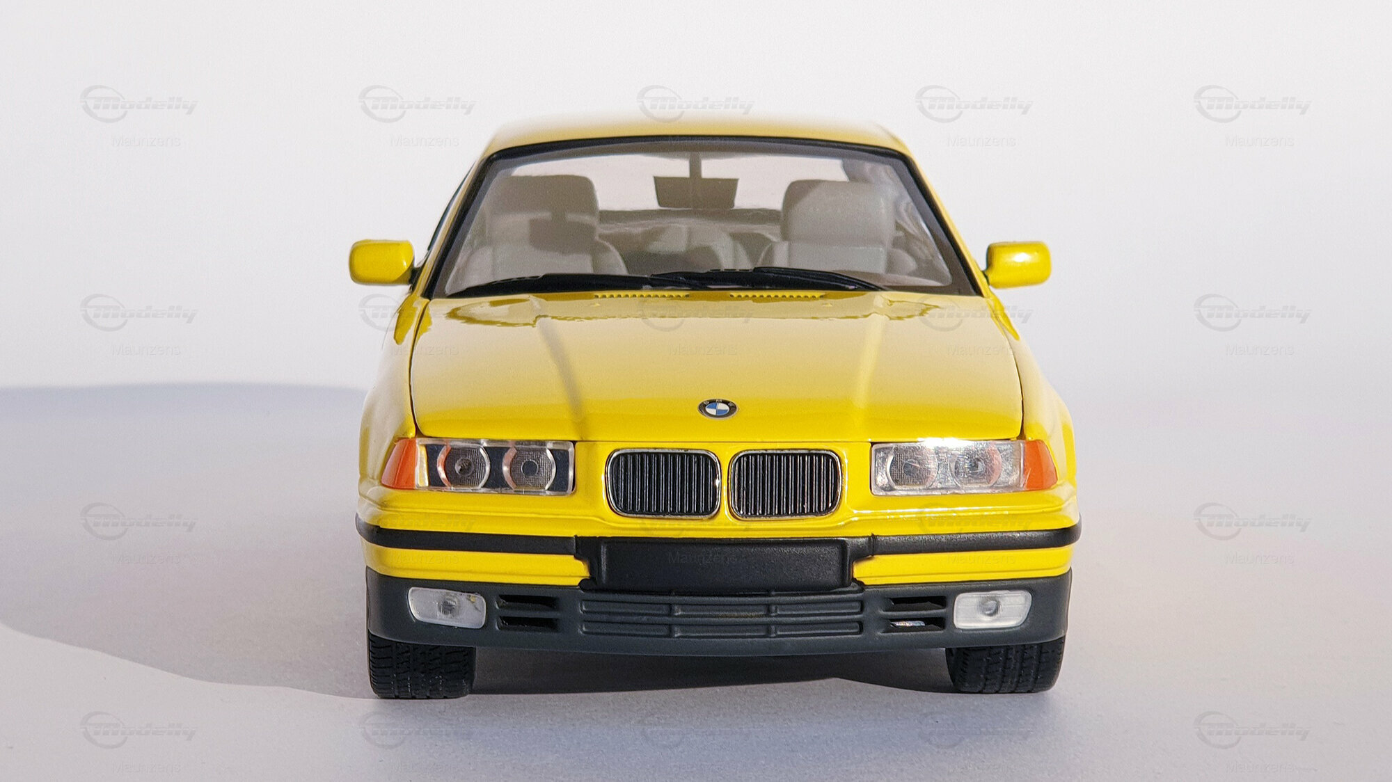 This miniature model of this classic BMW is made in a 1/18 scale and was manufactured by UT Models. Part of the collection of Modelly member "Maunzens," this model is a precise replica of the original, showcasing the attention to detail that UT Models puts into their work. The model is made of die-cast material, providing high stability and accuracy in details. The striking paint job in an intense yellow tone accurately reproduces even the smallest details like the BMW logos on the front and hubcaps. The model meets all expectations of collectors and BMW fans, making it a valuable addition to any collection.