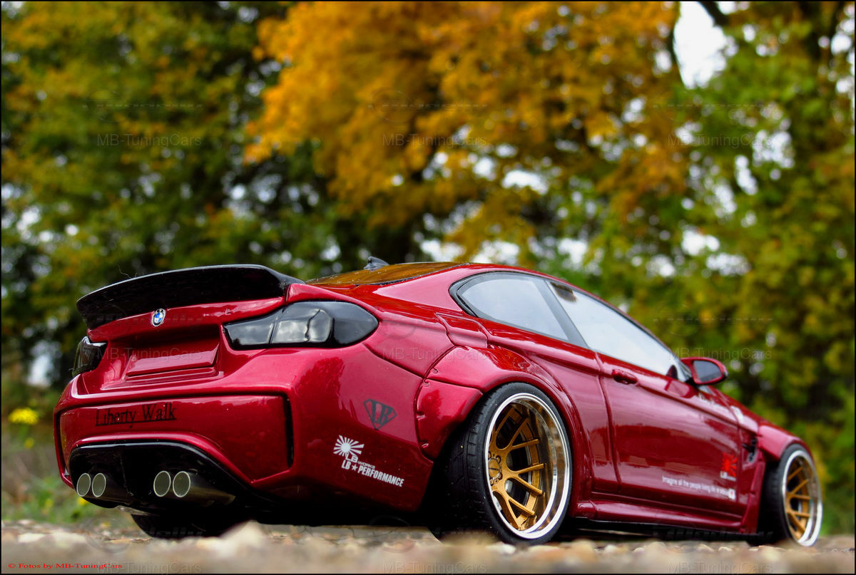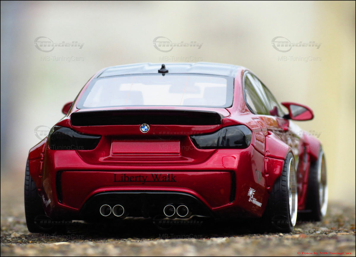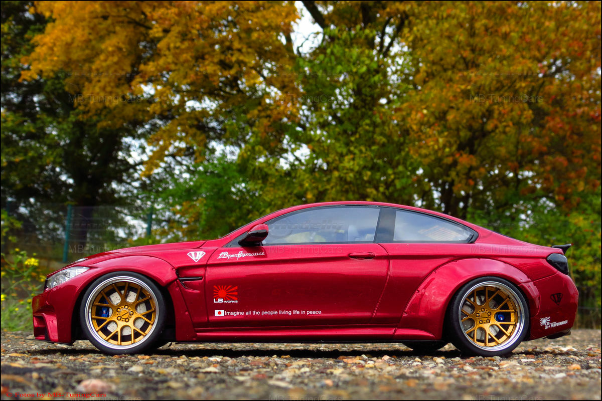 Although this model is clearly based on the real BMW M4 in the F82 generation, the modifications from Liberty Walk and MB-TuningCars give it its own identity. This makes it a real highlight for collectors. This modified representation is a tribute to the tuning culture and the iconic design of the original M4 – a must-have for fans of detailed model cars.