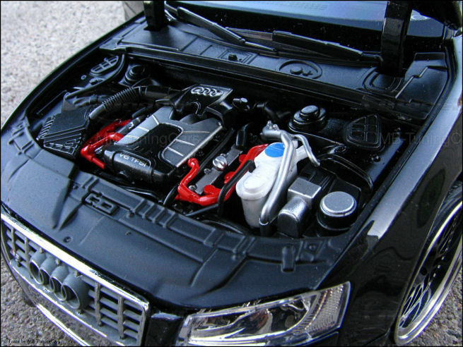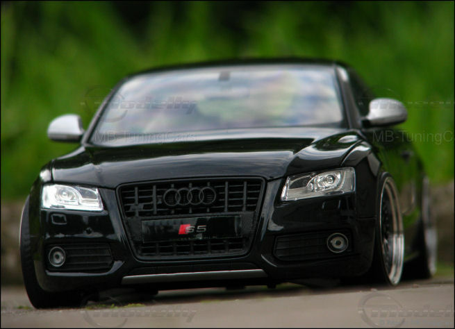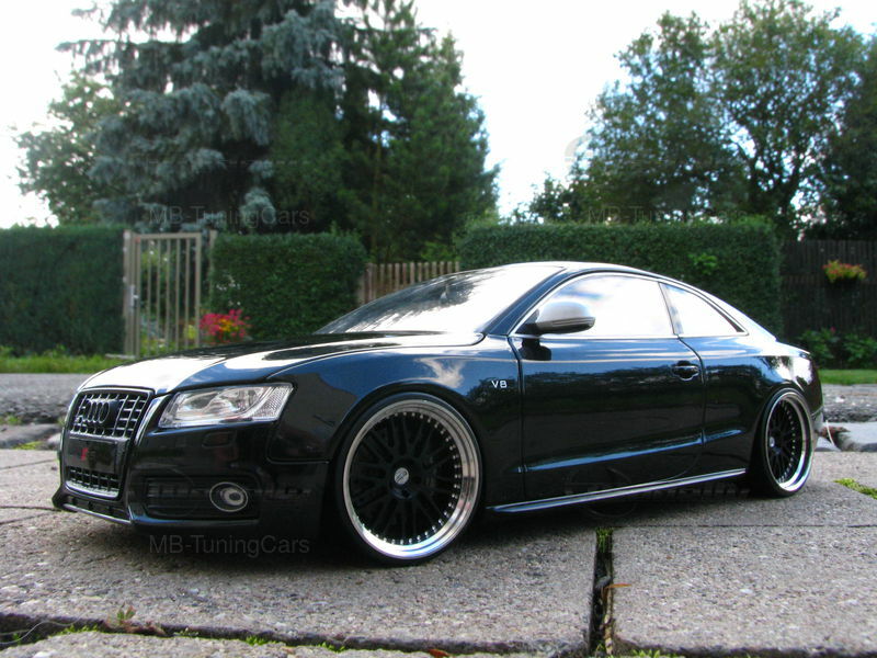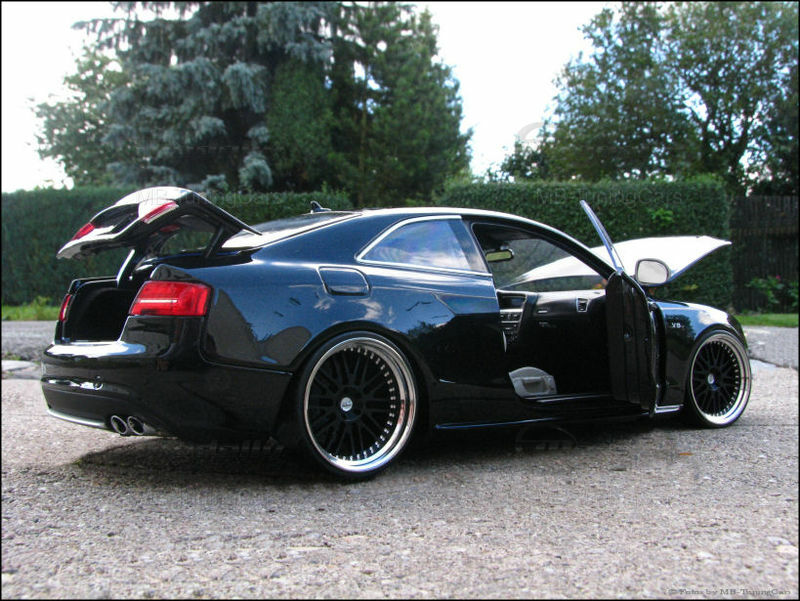 The photos clearly show that this model has a modified front bumper and a changed grille, giving the model an even sportier and more aggressive look. The deep black paint of the model makes it appear both elegant and powerful. The wheels, sourced from Rotiform, also deserve special attention as they differentiate the model from the production version at first glance. The lowered stance of the model and the chosen rims add an extra layer of realism and detail that appeals to model car enthusiasts of all ages.