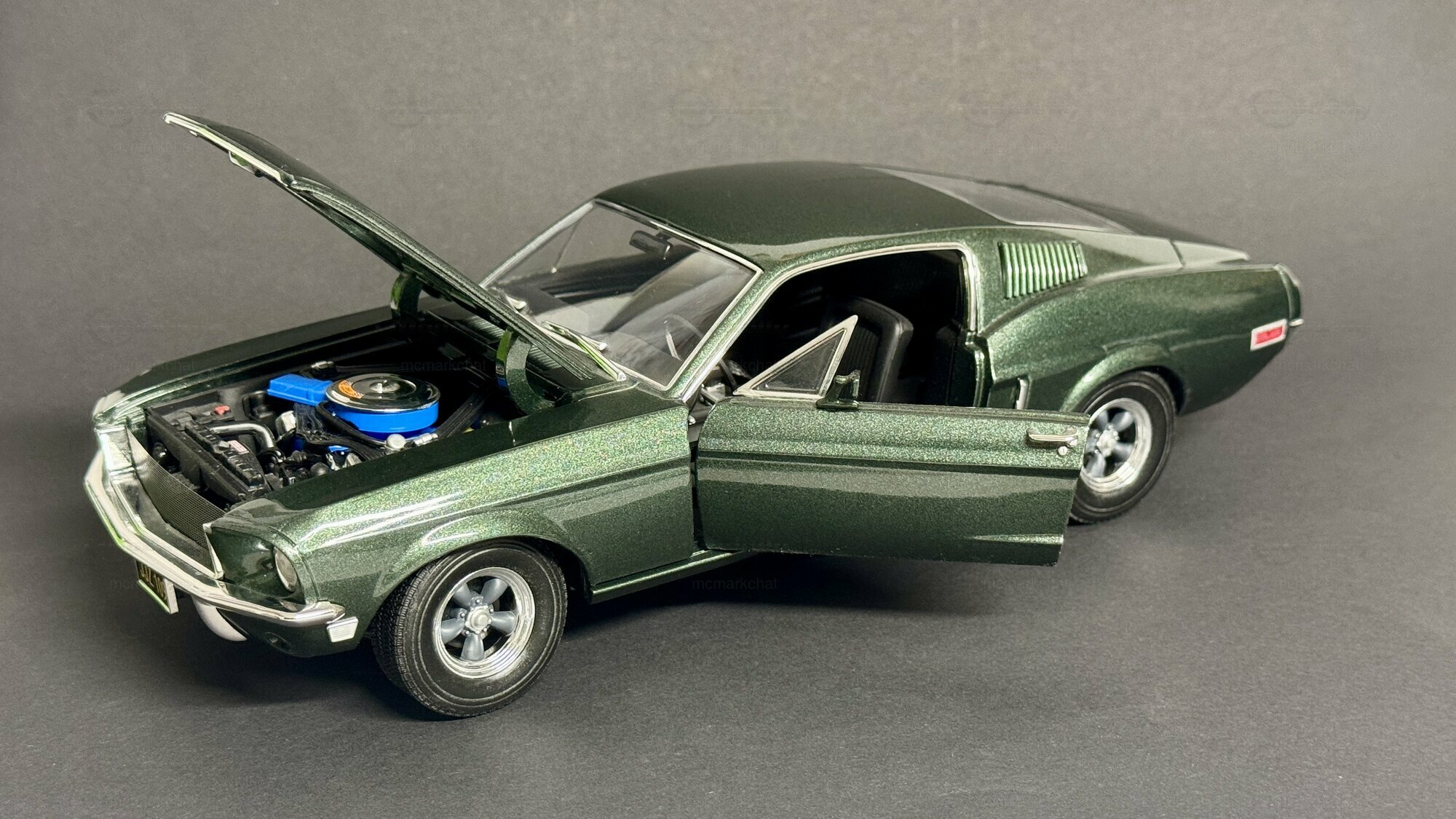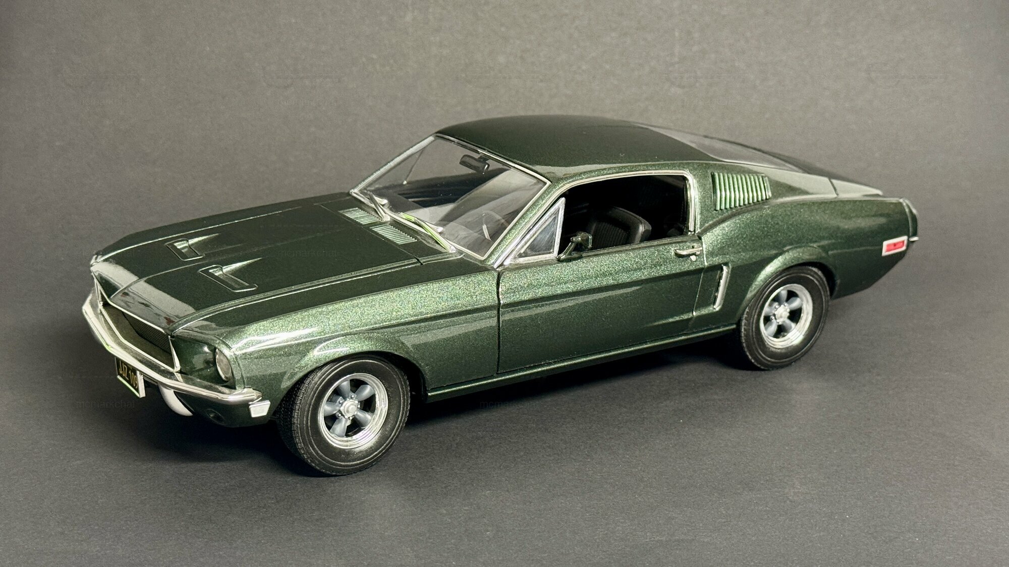 The displayed model car in 1/18 scale, made by the well-known brand Greenlight, is based on the Ford Mustang GT Bullitt from the second generation, produced between 1967-1968. The original car was designed by Joe Oros, who played a big role in shaping the cool look of both the first and second generations of the Mustang. With the second generation, Oros refined the concept, giving the car both elegance and a sporty, aggressive edge. The Ford Mustang hit the market for the first time in 1964, kicking off the "Pony Car" class. The second generation got a sportier design and beefed-up engines. A standout of this model is the famous GT Bullitt, which is known for not just its performance but also its iconic status thanks to its movie appearances.