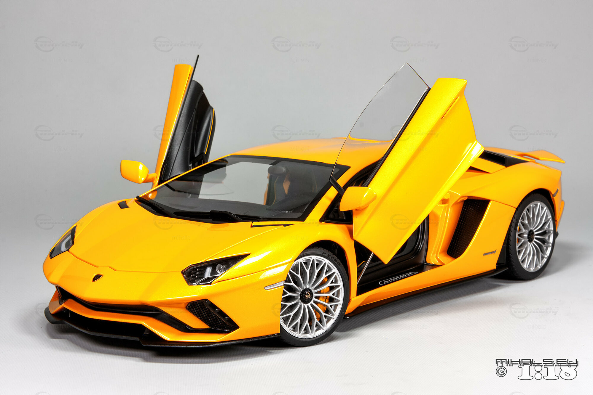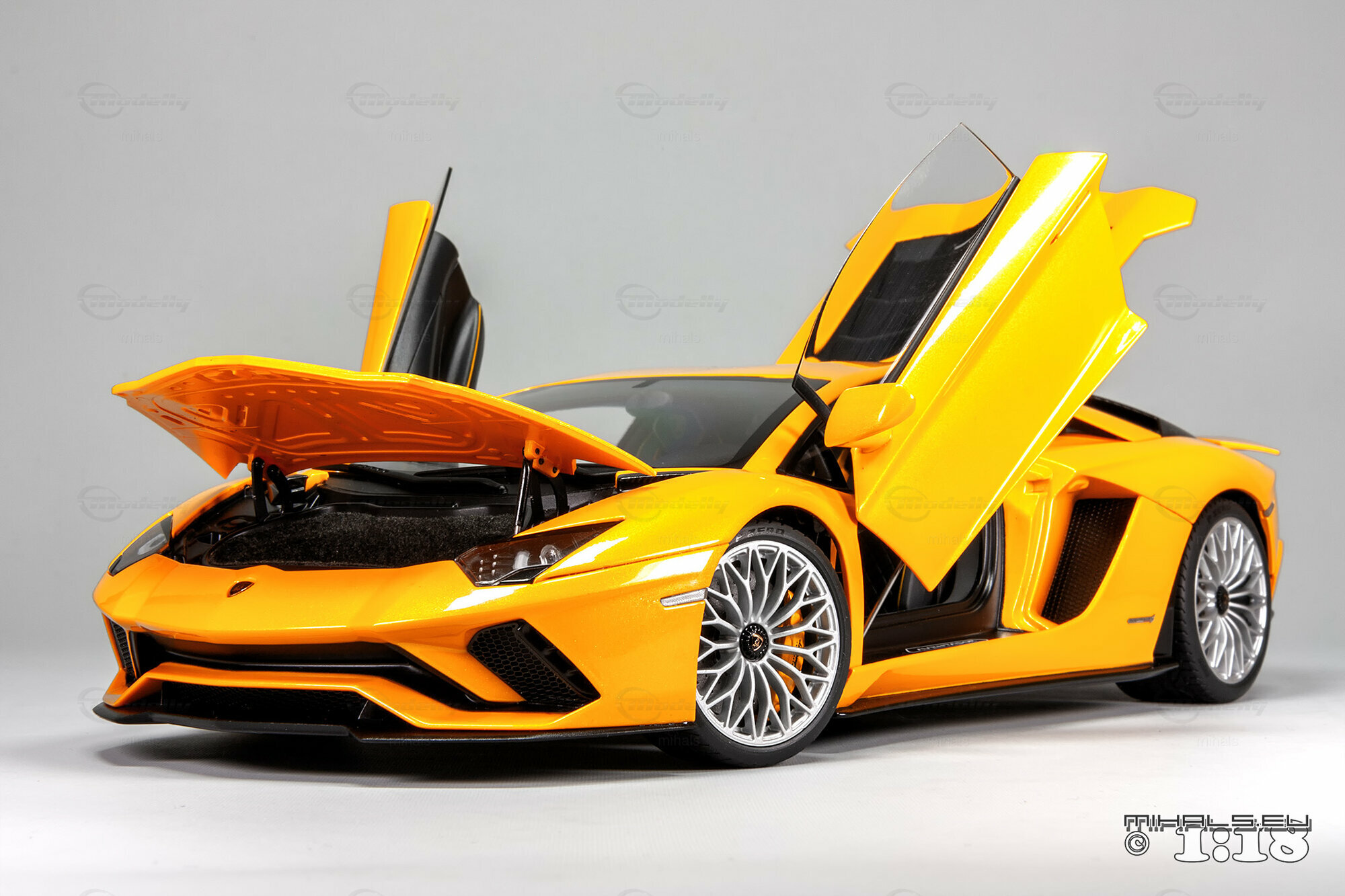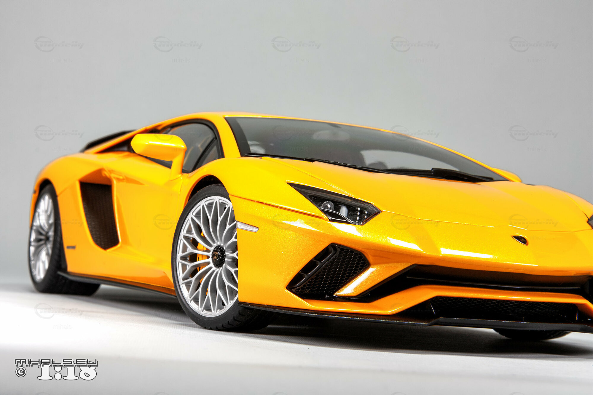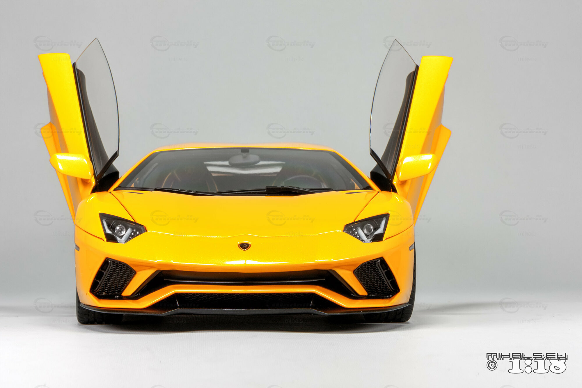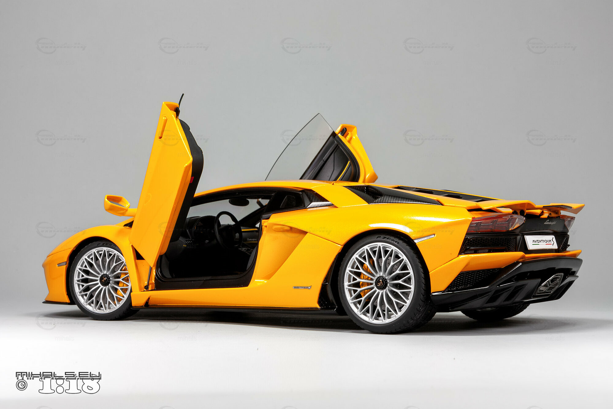 This 1/18 model from AUTOart showcases all the important technical aspects of the original. The front and sides of the model feature the typical air intakes and spoilers of the Aventador S. The wheels, likely styled by Horacio Pagani, are an exact replica of the original LM rims. The attention to detail on the brakes and calipers, which the original Lamborghini possesses, sets a standard. The interior is also superbly replicated, including the typical cockpit designs and seats found only in Lamborghini.
