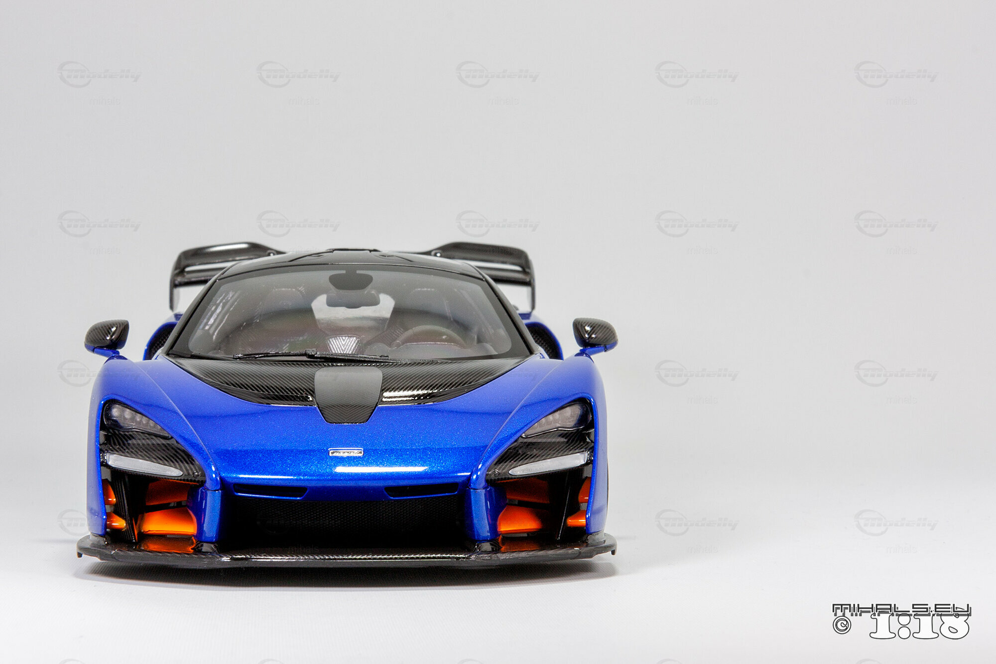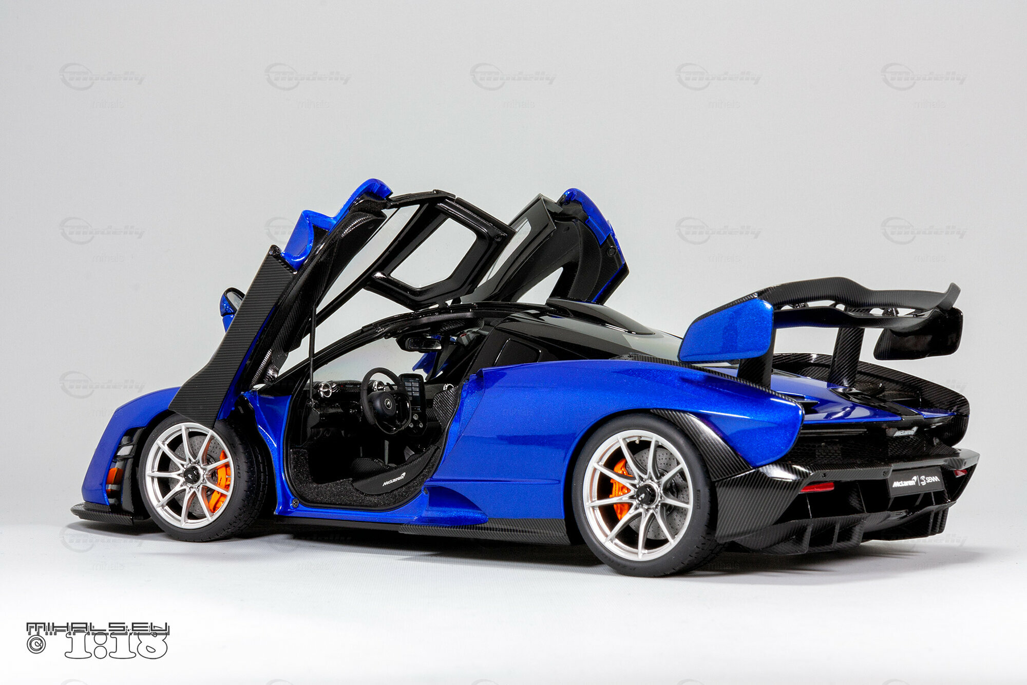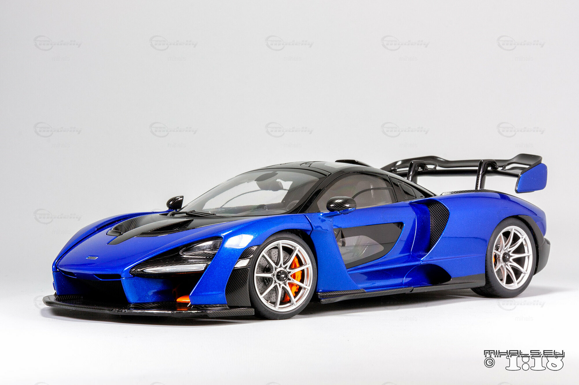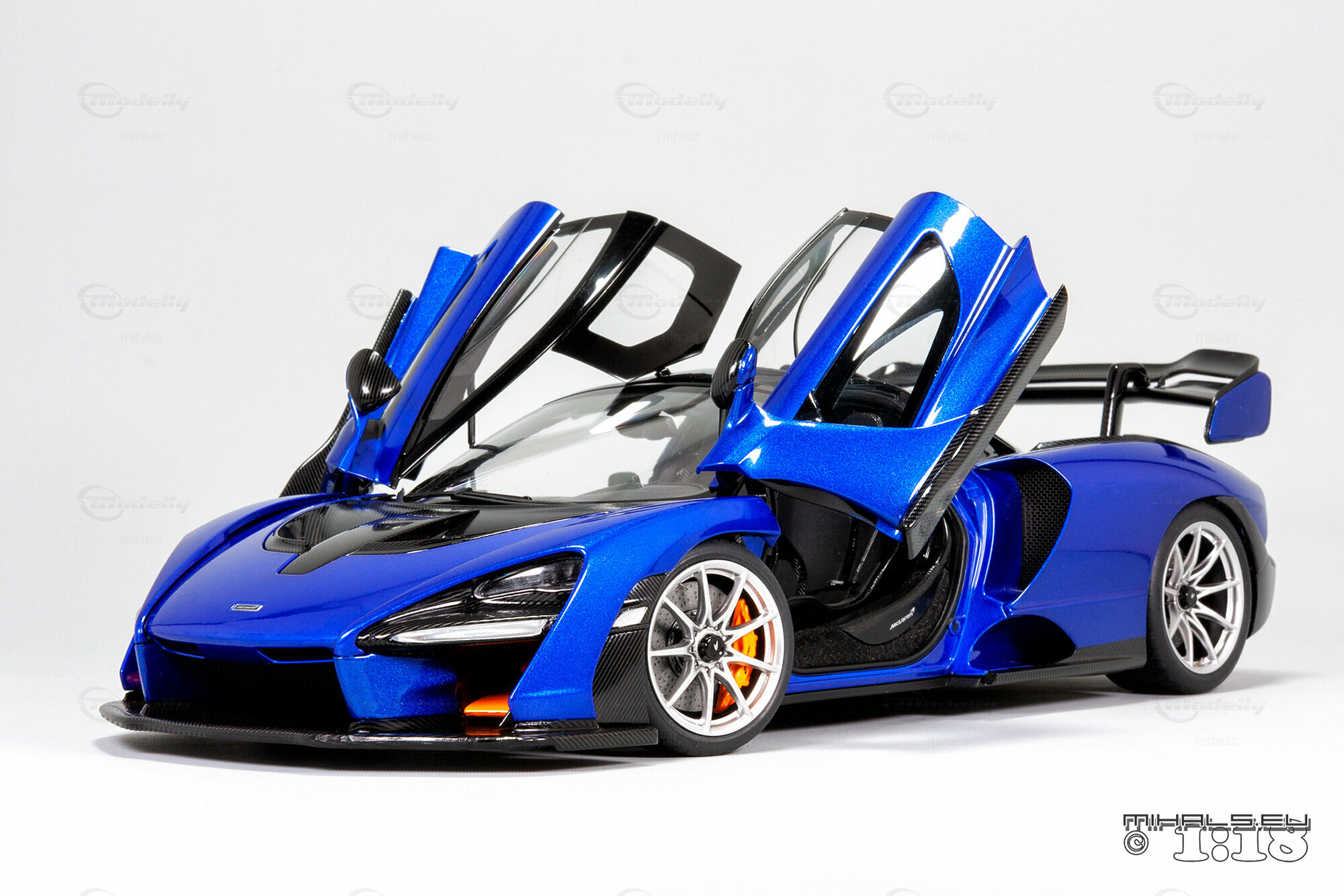 Here we have a meticulously crafted model of the McLaren Senna in 1/18 scale, made by AUTOart. This model is made of plastic and offers an impressively detailed replica of the original. Customers and collectors worldwide value the precision and dedication that go into AUTOart replicas. Visible details include the distinctive front headlights, accurately replicated air intakes, and the large rear wing, all in the 1/18 scale.