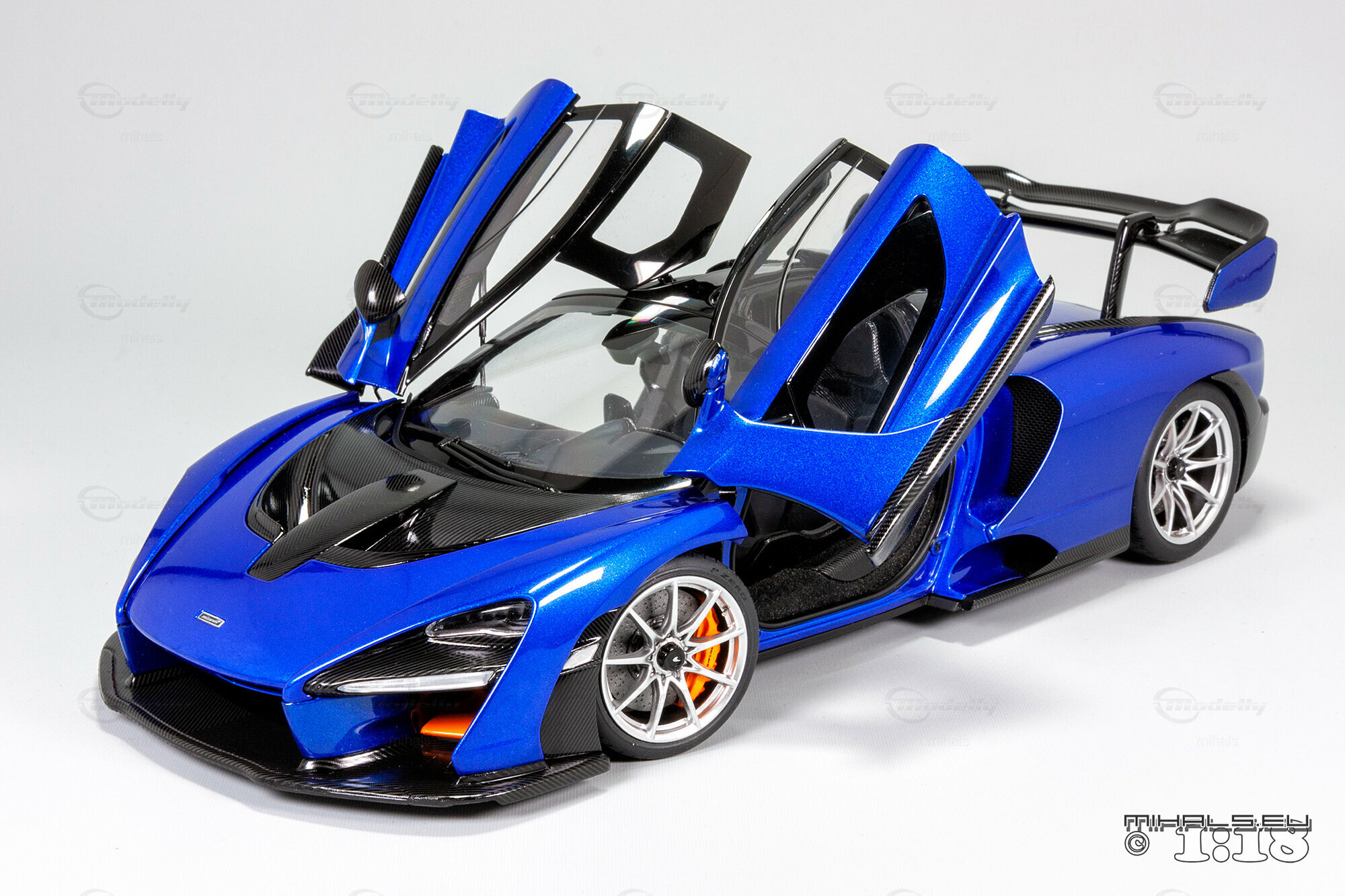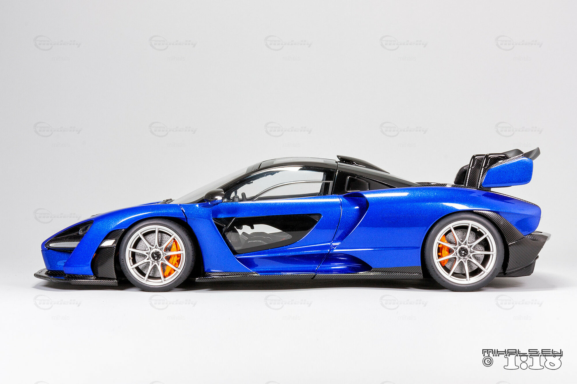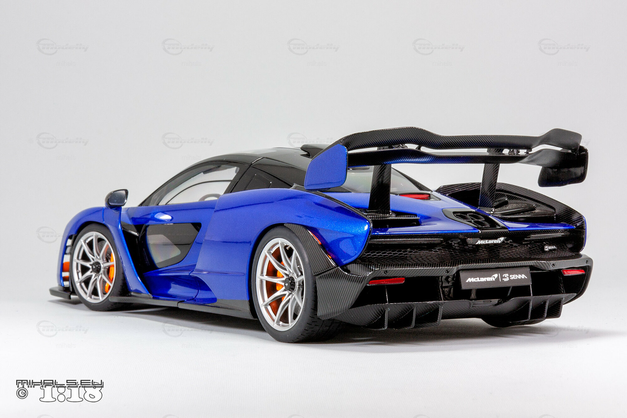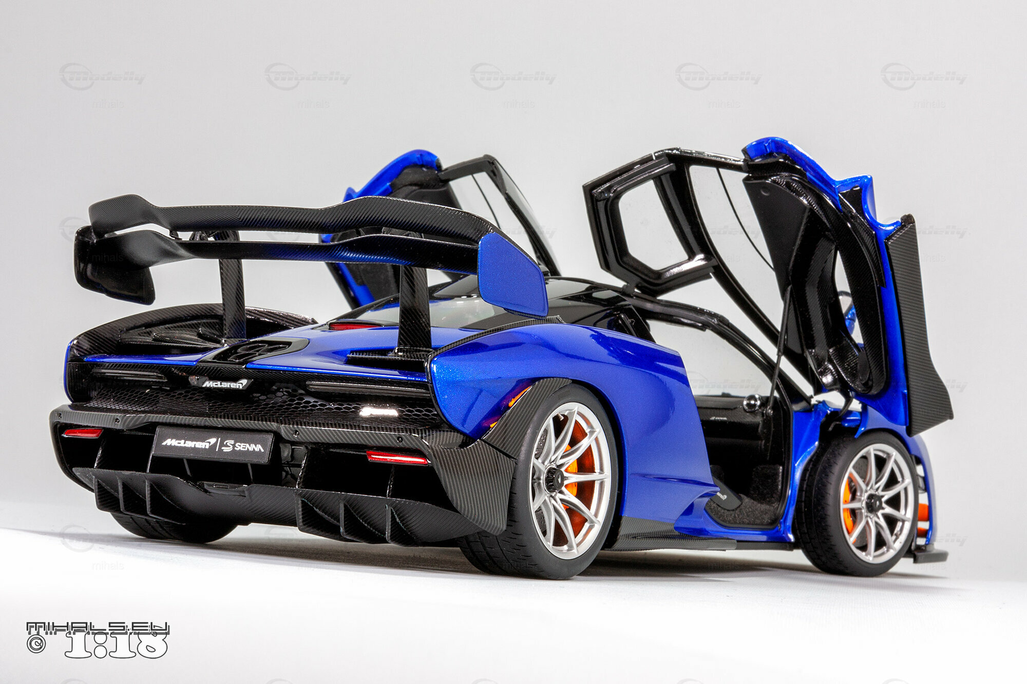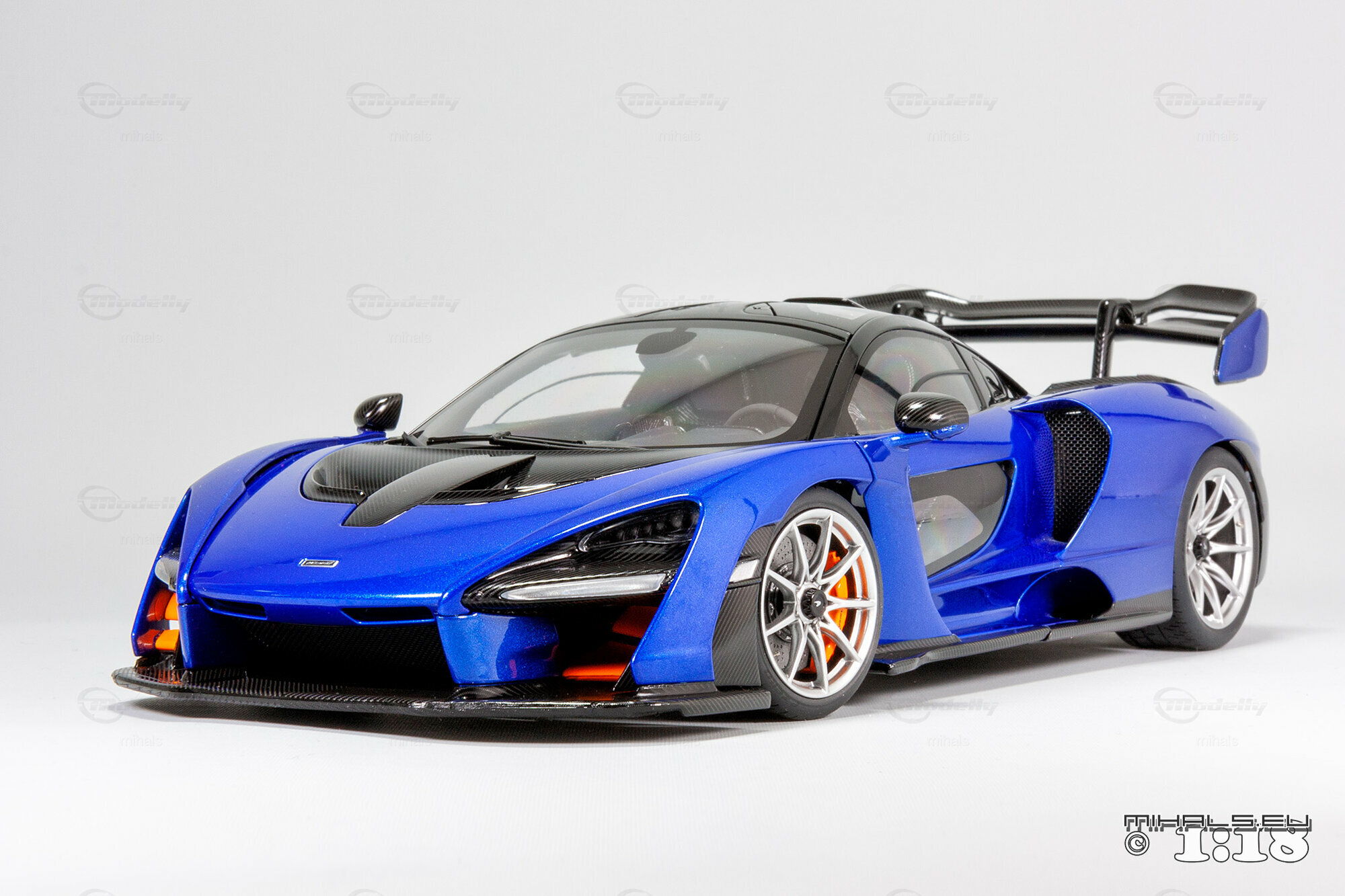 Here we have a meticulously crafted model of the McLaren Senna in 1/18 scale, made by AUTOart. This model is made of plastic and offers an impressively detailed replica of the original. Customers and collectors worldwide value the precision and dedication that go into AUTOart replicas. Visible details include the distinctive front headlights, accurately replicated air intakes, and the large rear wing, all in the 1/18 scale.