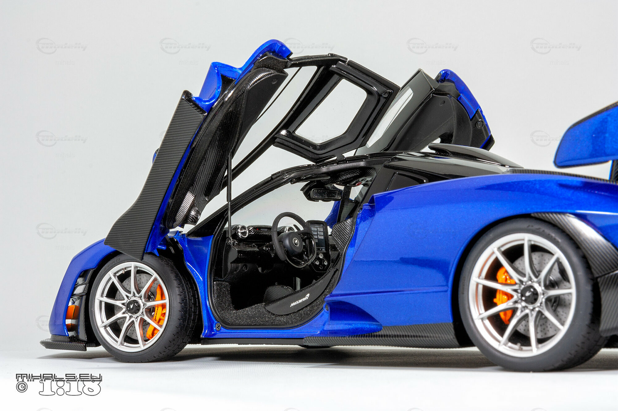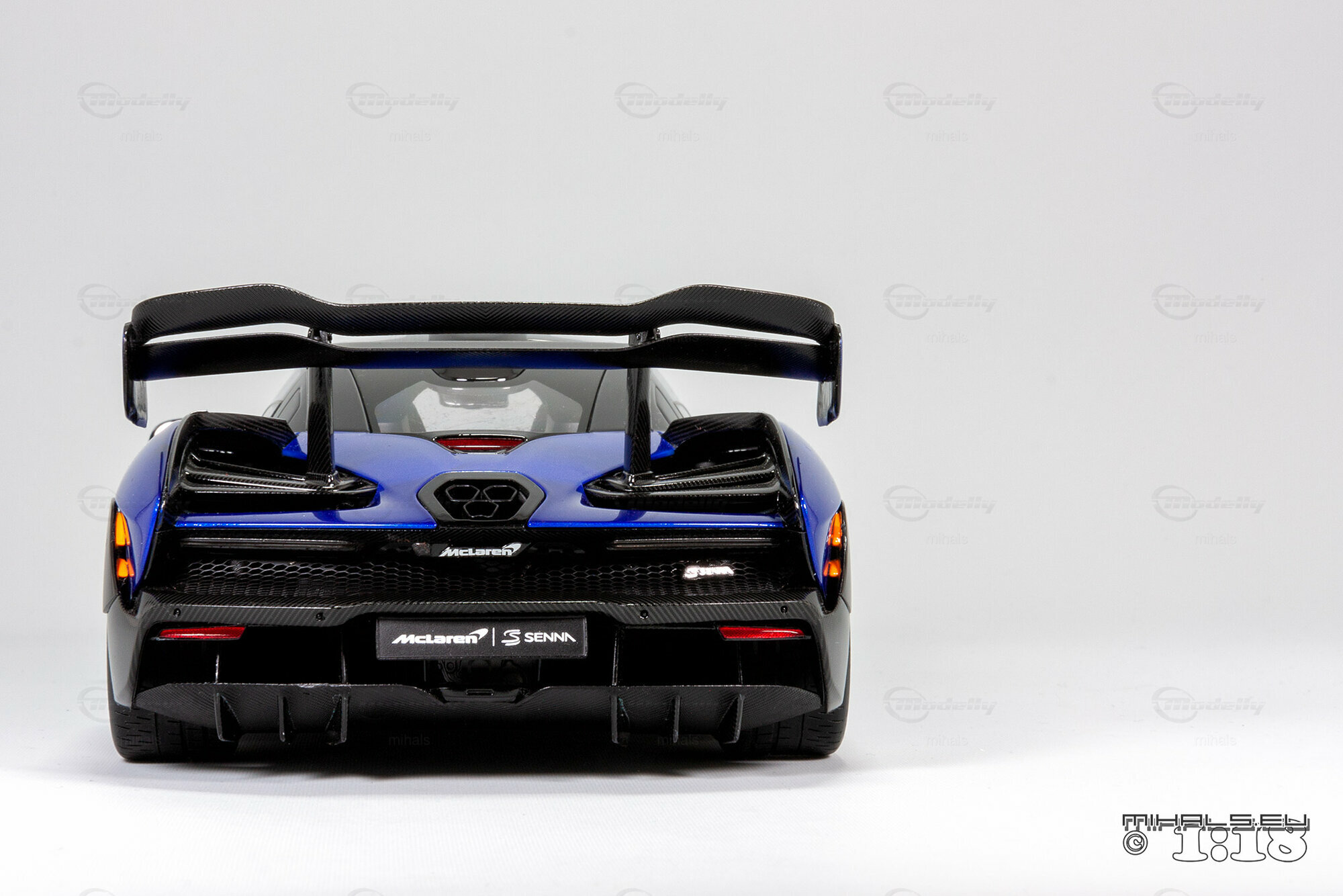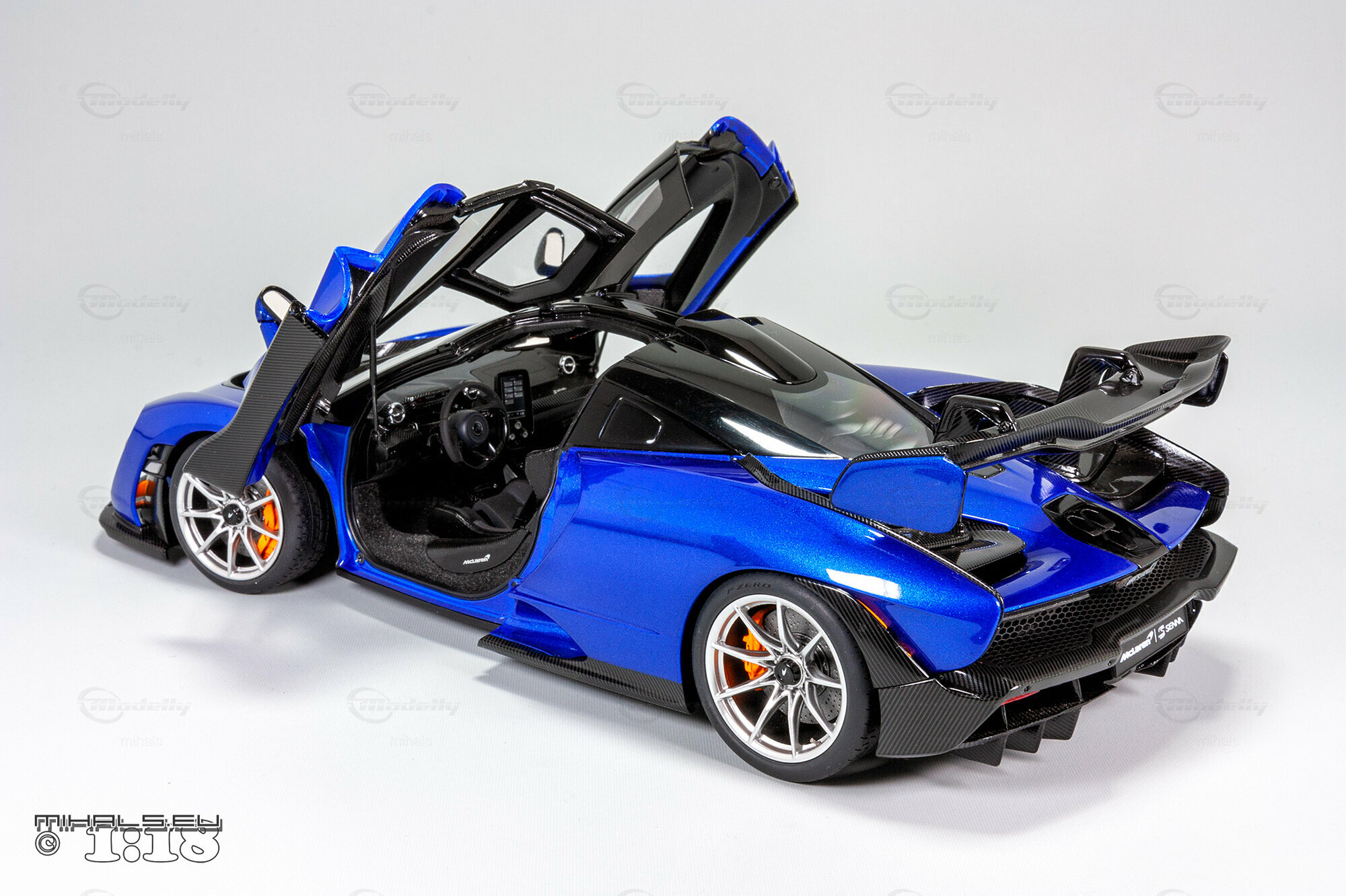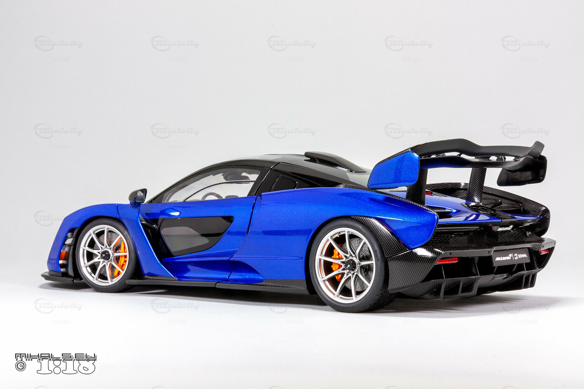 Here we have a meticulously crafted model of the McLaren Senna in 1/18 scale, made by AUTOart. This model is made of plastic and offers an impressively detailed replica of the original. Customers and collectors worldwide value the precision and dedication that go into AUTOart replicas. Visible details include the distinctive front headlights, accurately replicated air intakes, and the large rear wing, all in the 1/18 scale.