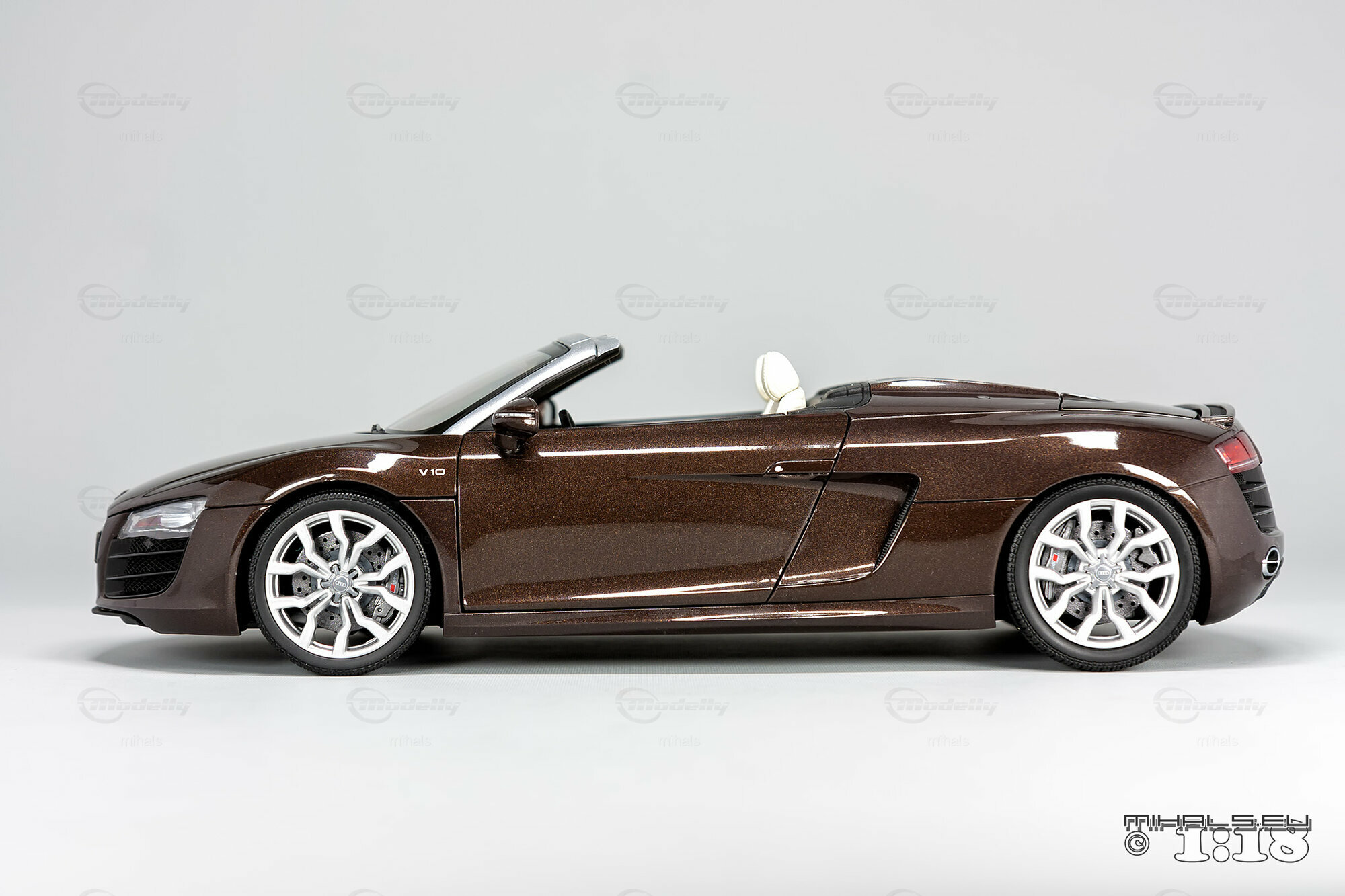 The Audi R8 V10 Spyder belongs to the first generation of the Audi R8 and was produced from 2006 to 2015. This exciting convertible was first unveiled at the 2009 auto show, combining outstanding technology and breathtaking design. The V10 engine of the Audi R8 V10 Spyder delivers an impressive 525 horsepower and has a maximum torque of 530 Nm (390 lb-ft). The engine is positioned in the middle of the vehicle and powers all four wheels through Audi's Quattro all-wheel-drive system, providing amazing acceleration and impressive grip even at high speeds. The body of the original is mostly made of aluminum, reducing weight and enhancing performance. The car accelerates from 0 to 62 mph in just 4.1 seconds and reaches a top speed of 194 mph.