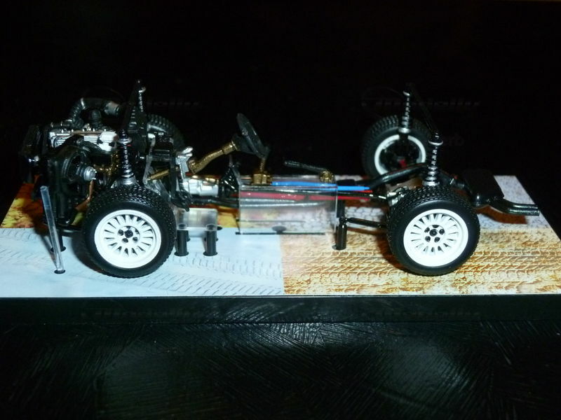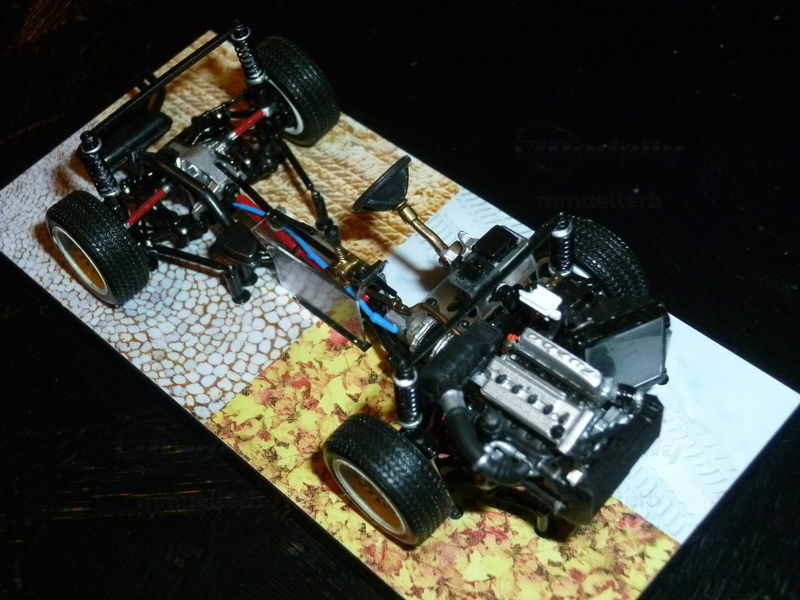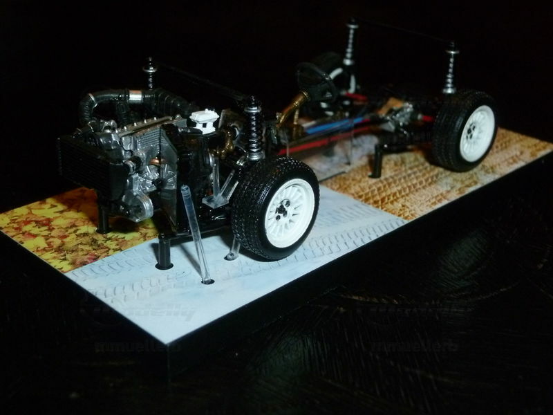 This 1/43 scale model car, manufactured by Audi Collection, is an exact replica of the original Audi Sport Quattro drive train. This model car, part of the collection of Modelly member "mmuellerb," impressively showcases the technical intricacies and inner workings of the vehicle. In the photos, the accurately replicated suspension, distinctive engine, and detailed components are clearly visible. The model includes realistic design of springs, shock absorbers, and axle construction. The exhaust and wiring are also reproduced in impressive accuracy, captivating collectors who appreciate attention to detail.