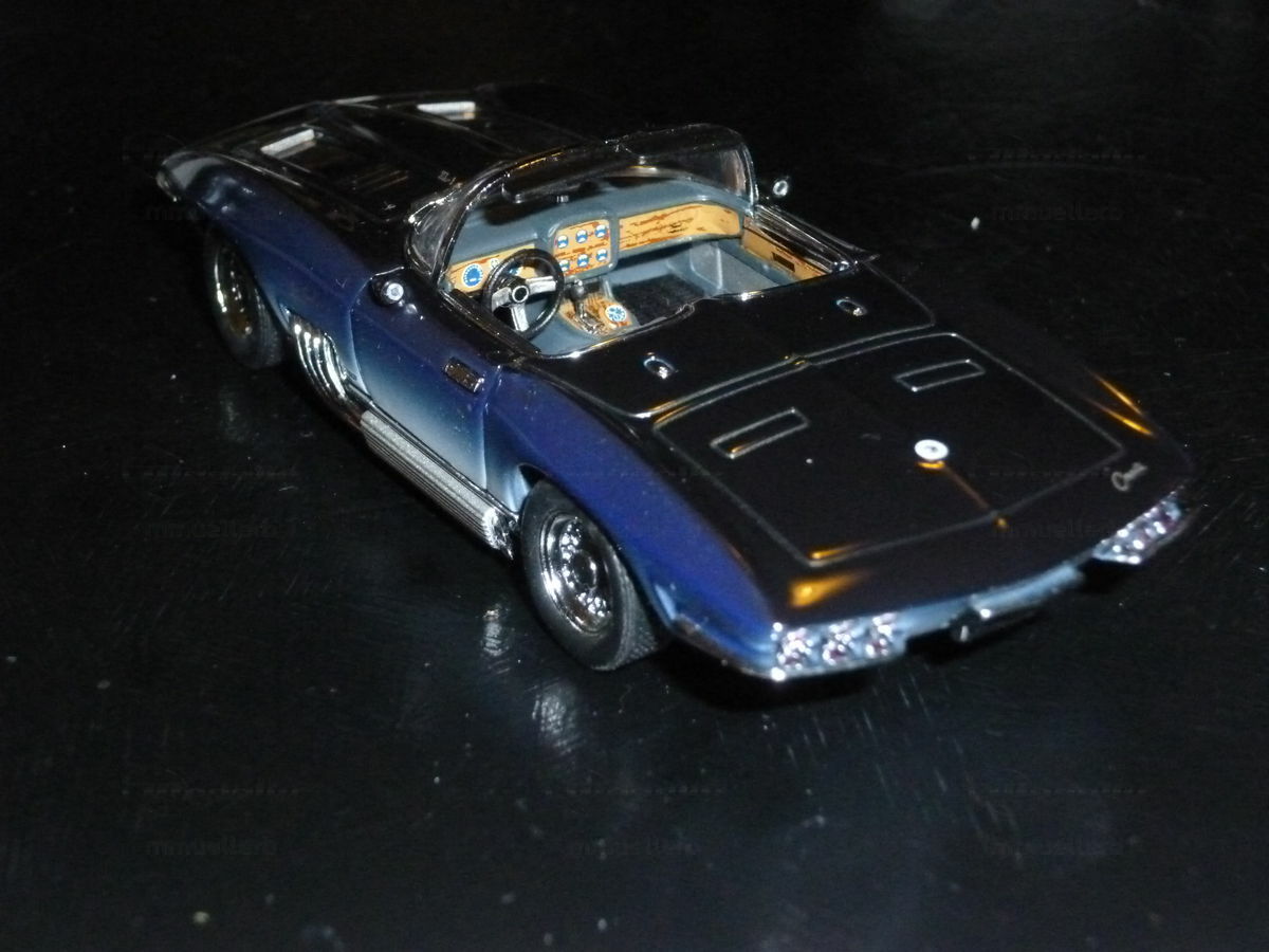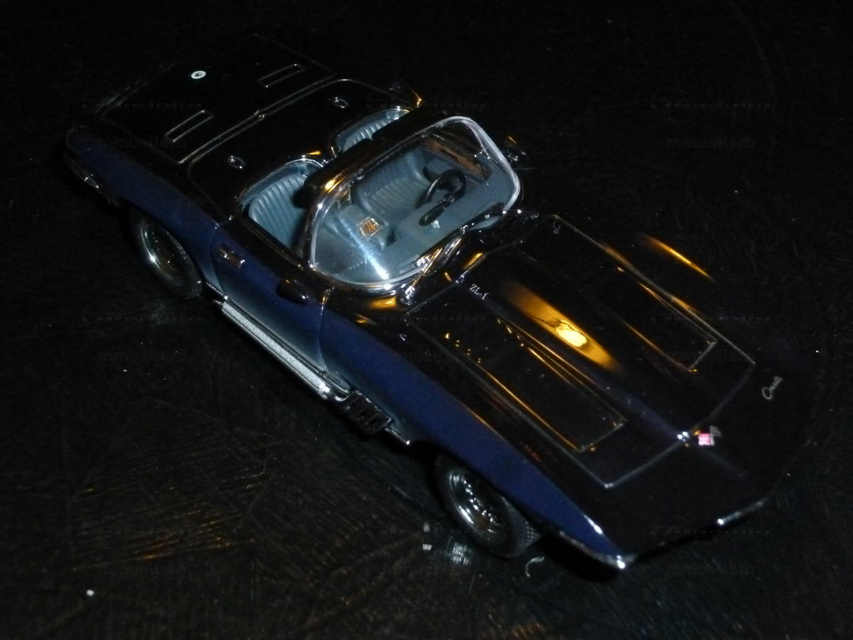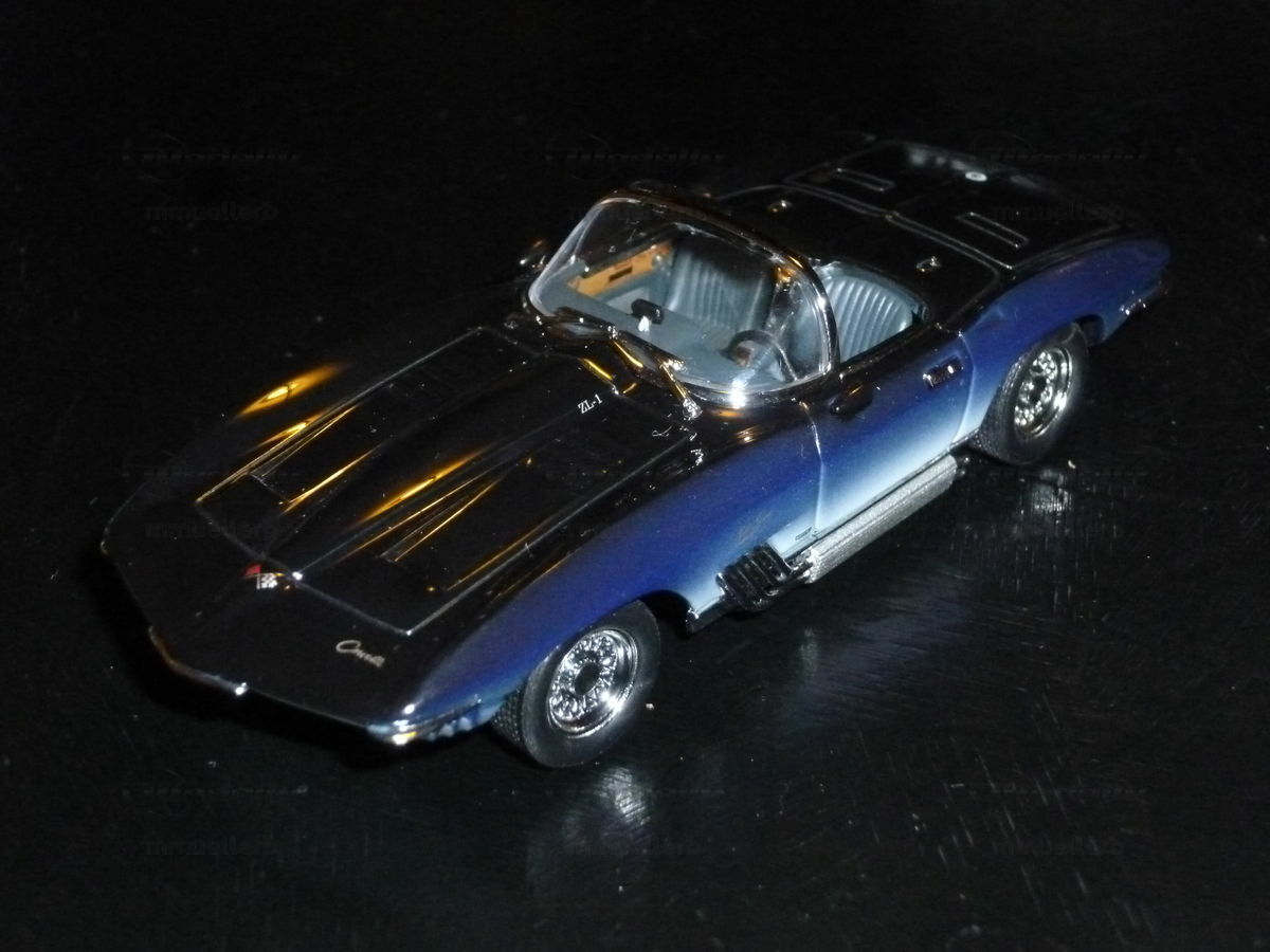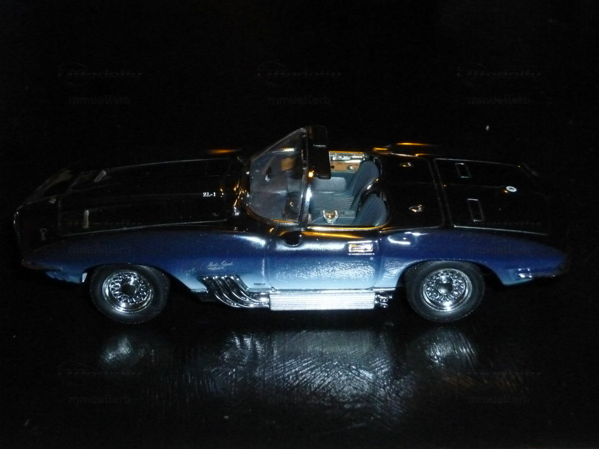 The 1/43 scale model of the Chevrolet Corvette Mako Shark by AUTOart is a precise replica of this iconic vehicle. Crafted from die-cast material, this model offers details that collectors around the world appreciate. The distinctive color shifts inspired by the mako shark are accurately reproduced. On the sides, one can spot the iconic air intakes and sculpted rear of the vehicle reflecting the improved aerodynamics of that era. This model is part of the collection of Modelly member "mmuellerb" and showcases authentic replicas of the logos and insignias from the original. A perfect addition to any model car collection.