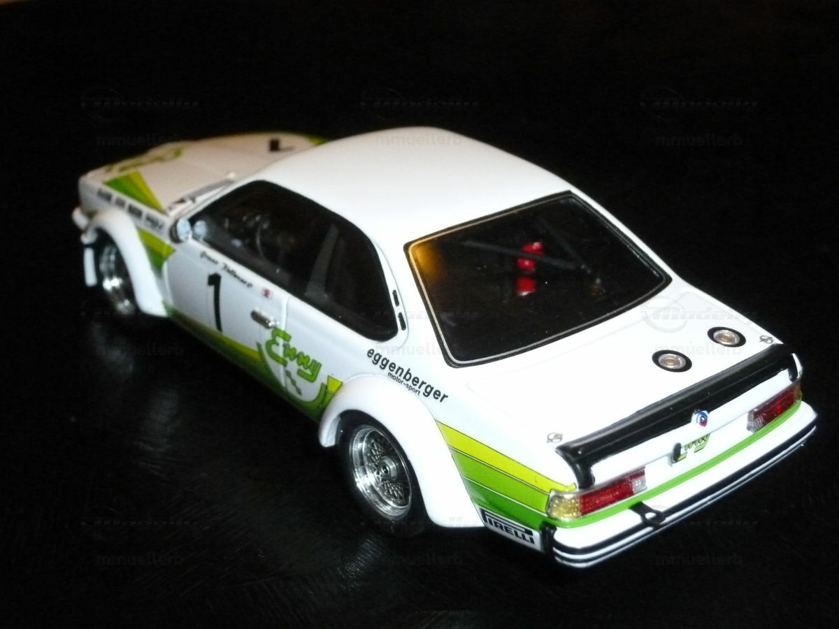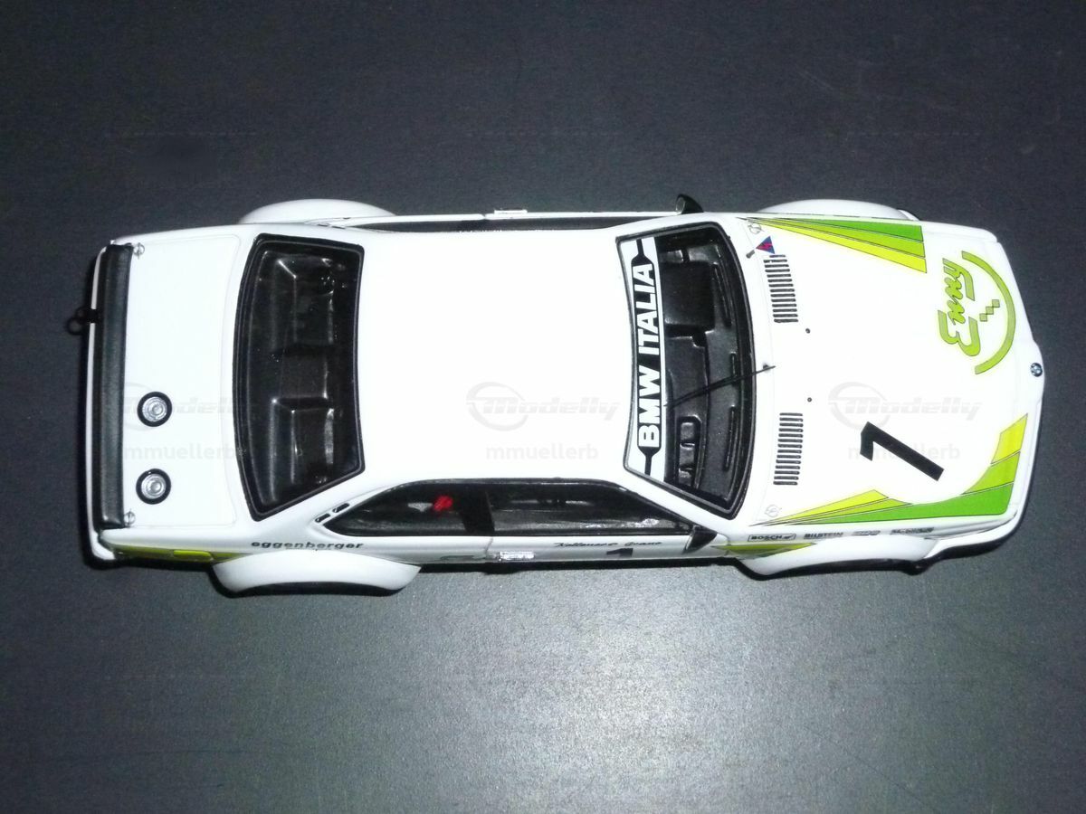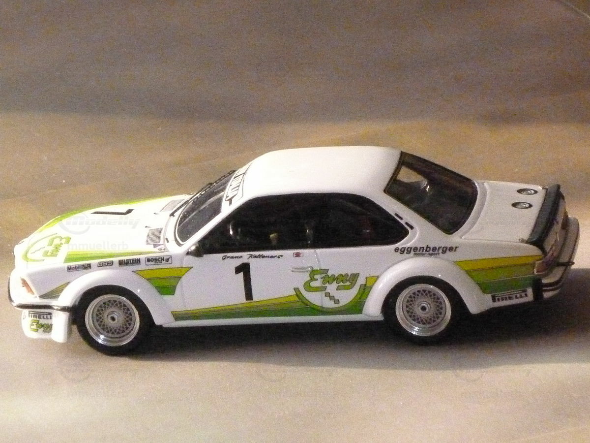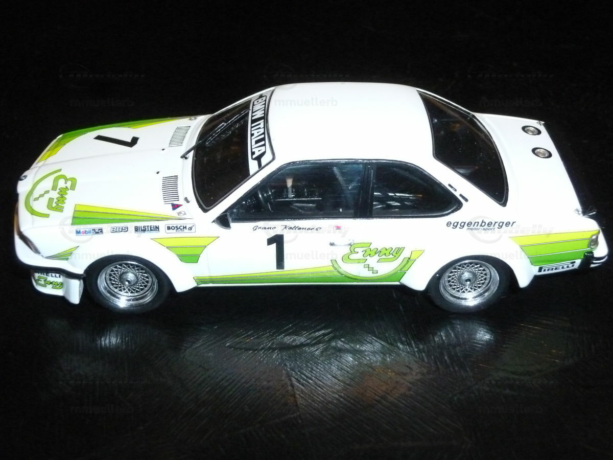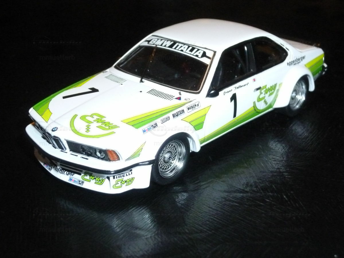 The BMW 635 CSi not only achieved significant success in touring car racing but was also known for its numerous sponsors. On the model, the logos of Enny, Eggenberger, Mobil 1, and Pirelli are prominently displayed, providing the vehicle with an authentic racing look. These sponsor decals are an interesting detail for collectors, as they highlight the history and authenticity of the original car's racing involvement. Sponsors played a crucial role in financing and the team's success, making the model a valuable piece for any collection.