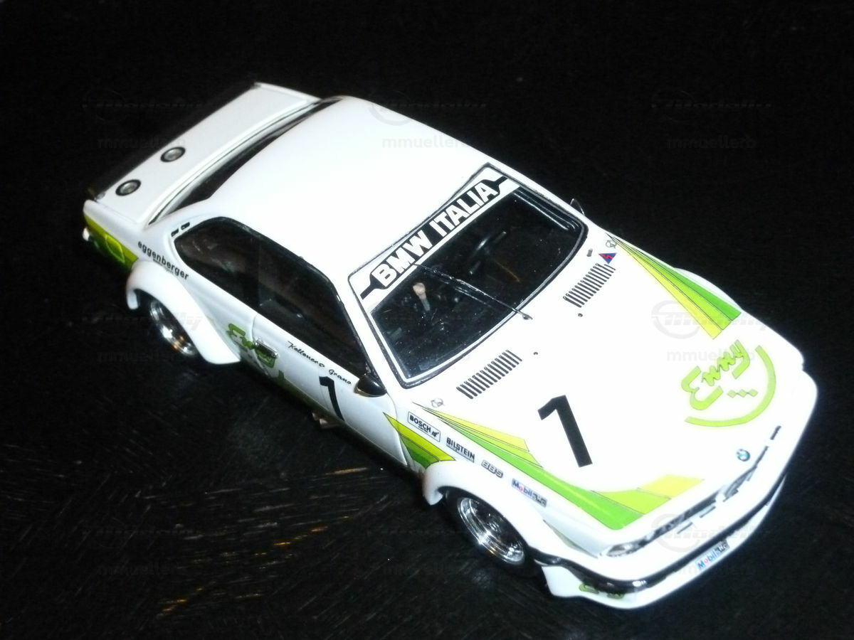 This 1/43 scale model car from Spark Minimax is a detailed reproduction of the BMW 635 CSi. Crafted from high-quality resin, the model impresses with its precision and high level of detail. The green-white livery with striking "Enny" decals and the number "1" corresponds to the original racing version, giving the model an authentic look. The cockpit features meticulously replicated racing seats and dashboard. The model's paintwork is clean and precise, the wheel covers and grille are detailed and accurately represented.