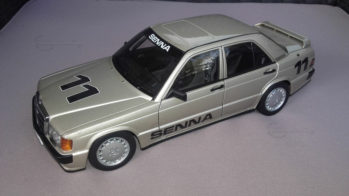 This model car offers automotive model collectors and Mercedes-Benz enthusiasts a wonderful opportunity to take a glimpse into the history and technology of the Mercedes-Benz 190E 2.3-16V. It belongs to the collection of Modelly member "modelmax" and stands out with its detailed paintwork and precise reproduction. The wheels, interior, and all visible details have been carefully and realistically designed to accurately reflect the original. Furthermore, details like the central "SENNA" logo and precise sponsor decals make the model authentic and collectible.