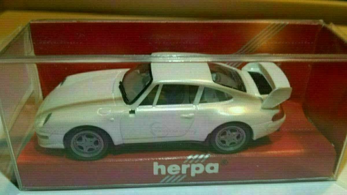The Porsche 911 (993) Carrera RS 3.8 Clubsport was launched in 1995. To put that year in context: the World Trade Organization started work, Microsoft released Windows 95, and “Gangsta’s Paradise” was filling the charts — just some cultural anchors to give you an idea of the car’s era. The model in the photos shows a plain white paint job with no stripes or RS decals, so the eye is drawn to the 993 shape: wide rear shoulders and the fixed wing. The finish looks even, the bumpers are uniformly colored and the lights are separately colored. There are no license plates or specific motorsport badges; that fits a generic street version of the Porsche 911 (993) Carrera RS 3.8 Clubsport. In display cases or on H0 dioramas the size works well with train or street scenes. For collectors who like consistency, the plastic construction is handy because it keeps weight down while still delivering fine detail. If you want to build a coherent collection, add standard Carreras, Turbos and RSRs of the 993 generation to show the technical range. This specific piece isn’t tied to any movie — it’s just a general street representation of the real car. If you’re comparing models, pairing it with a 964 will clearly show the evolution in front and rear design. Scales like 1/43 or 1/18 are good alternatives if you want larger, opening‑part models, but 1/87 is great when space is tight.