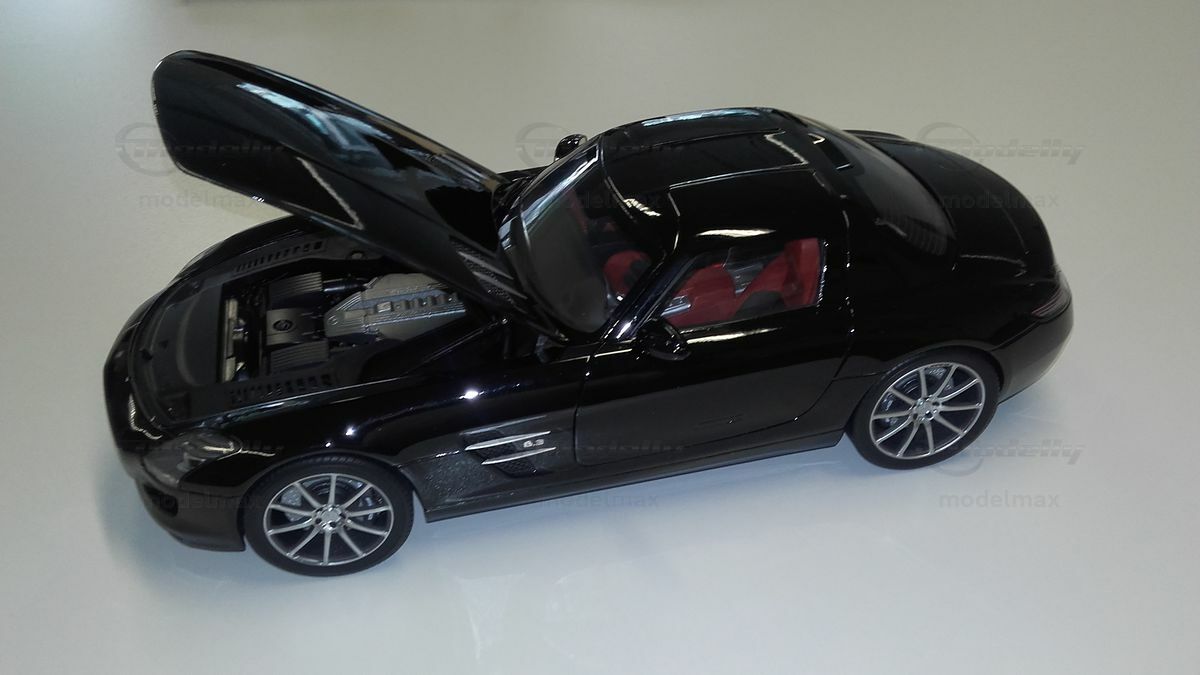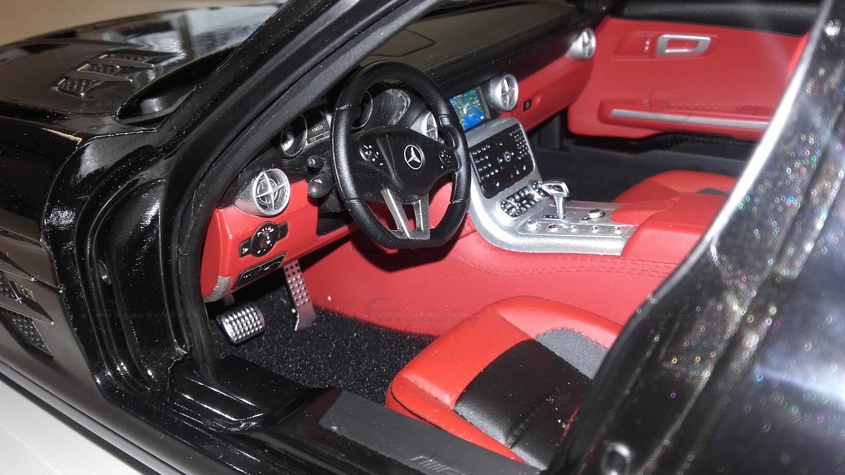 The 1/12 scale model of the Mercedes-Benz AMG SLS AMG presented here was crafted by Premium ClassiXXs and is based on the robust diecast material known for its high level of detail and durability. It is an impressive collector's item for all model car enthusiasts. The precision of the model, part of the collection of Modelly member "modelmax", is remarkable. Particularly striking is the meticulously recreated engine bay with all its components and the accurately designed engine cover adorned with the Mercedes-Benz star.