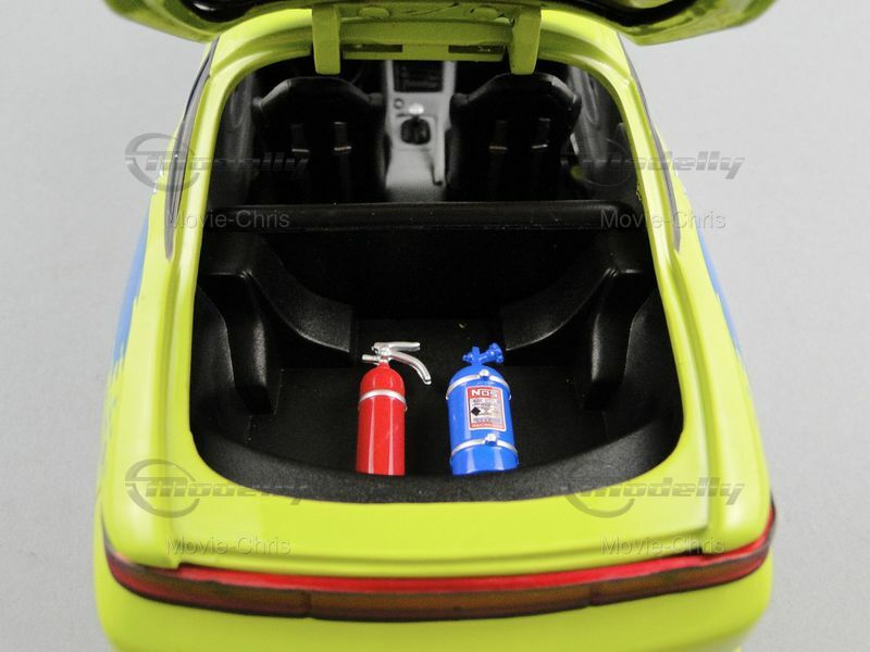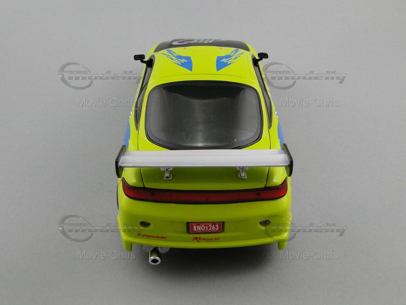 The model car presented here, made by Ertl in a scale of 1/18, lovingly and accurately showcases the distinctive features of the original vehicle. This is a detailed replica that can be the centerpiece of any model collection. Noteworthy features of this model include the realistically recreated paintwork and decals reflecting the design of the original from the movie The Fast and the Furious. The photos clearly show the neon green base color and the blue and white accent stripes. These details make the model particularly authentic and an impressive collector's item. The model is a highlight in the collection of Modelly member "Movie-Chris".