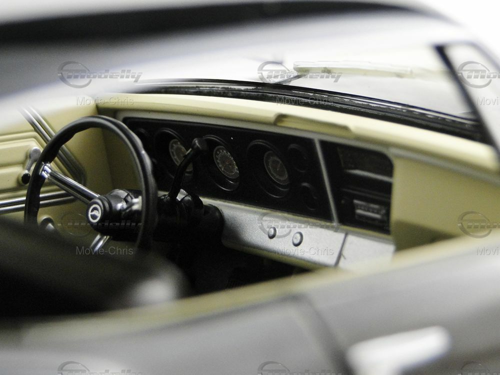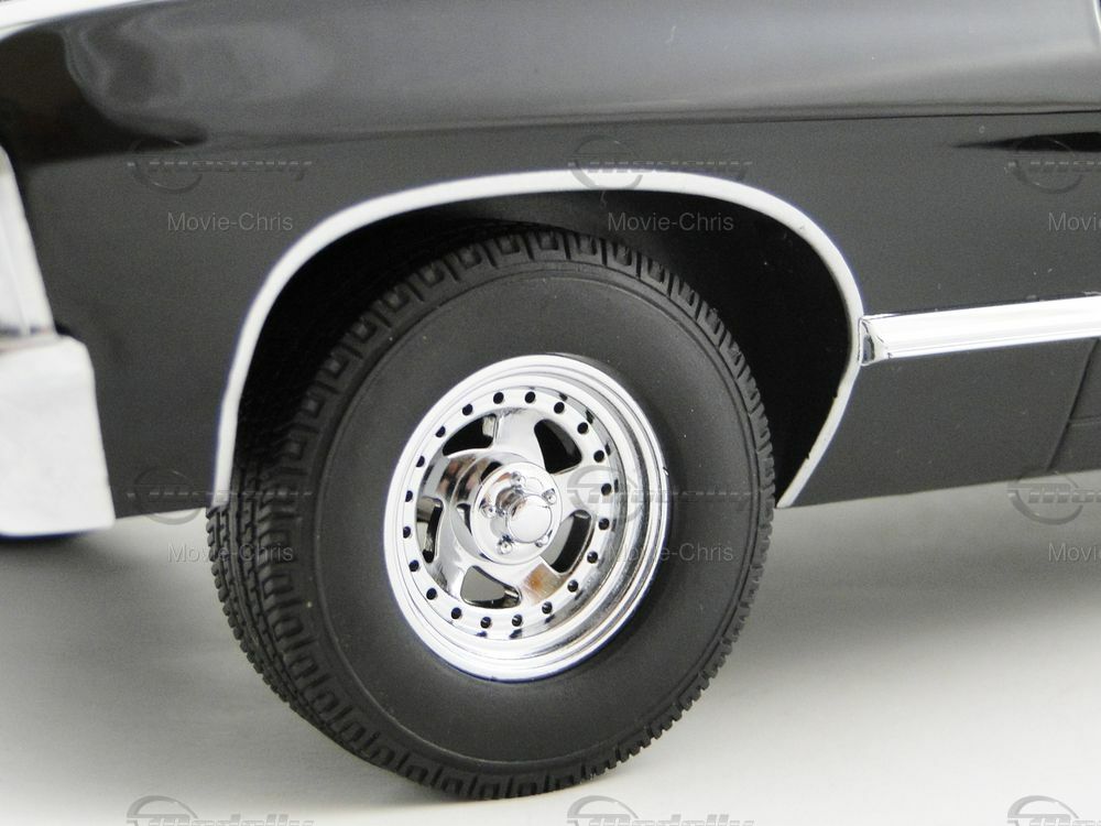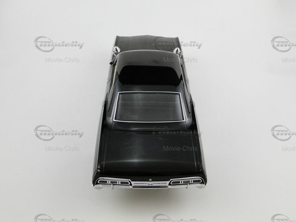 The scale model car showcased here, in the 1/18 scale, is a high-quality miniature replica of the Chevrolet Impala Sport Sedan 4-Door, manufactured by GreenLight Collectibles from diecast material. It is part of the collection of Modelly member "Movie-Chris". This detailed model stands out for its accurately reproduced lines and chrome accents that capture the original design of the vehicle well. The authentic tires and rims as well as the replicated headlights and taillights are particularly eye-catching. The model is painted in a classic black color that enhances the car's elegant and classic character. The interior details are faithfully replicated, from the seats to the dashboard, providing a glimpse into the impressive interior architecture of the original.