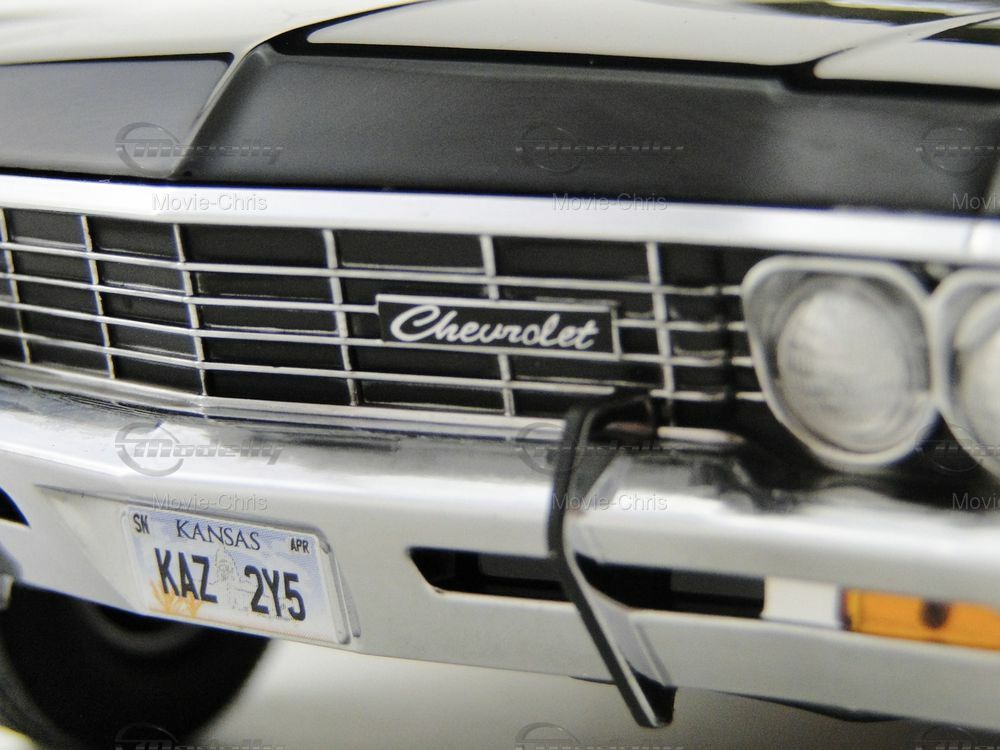 Of particular interest to film and series enthusiasts is the fact that this model represents the Chevrolet Impala Sport Sedan 4-Door from the popular series Supernatural. In the series, this car plays a central role and belongs to the main characters Dean Winchester and Sam Winchester, portrayed by Jensen Ackles and Jared Padalecki. Lovingly called "Baby", the Impala serves the brothers as an important mode of transportation and often as a safe haven in their supernatural adventures. The scenes of the brothers traveling across America and battling demons and other beings have made the Impala famous worldwide. This scale model is not only an interesting collector's item for car enthusiasts but also for fans of the series.