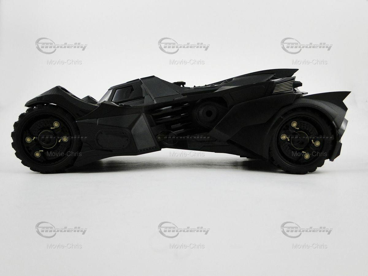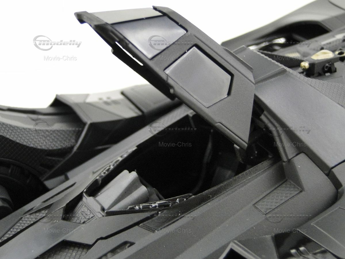 The original Batmobile from Batman: Arkham Knight is a prime example of tech excellence. Equipped with a V10 engine that ensures high speeds, it’s built to handle everything—from chasing down villains to engaging in massive battles. In the game, it comes with a cloaking system that lets Batman move stealthily through Gotham City and a 60mm cannon to take down enemy drones and tanks. Plus, it has built-in hacking tech that allows Batman to control various objects or foes from a distance.The sleek paint job—deep matte black with slight metallic accents—creates a striking contrast. The sharp angles and winged elements give it an aggressive look, emphasizing both aerodynamics and power. On the model's top, you can spot exact replicas of the ventilation units and identification markings visible on the actual vehicle.