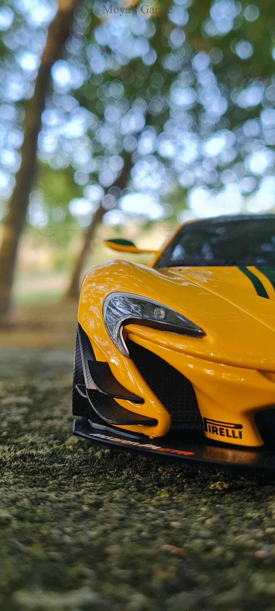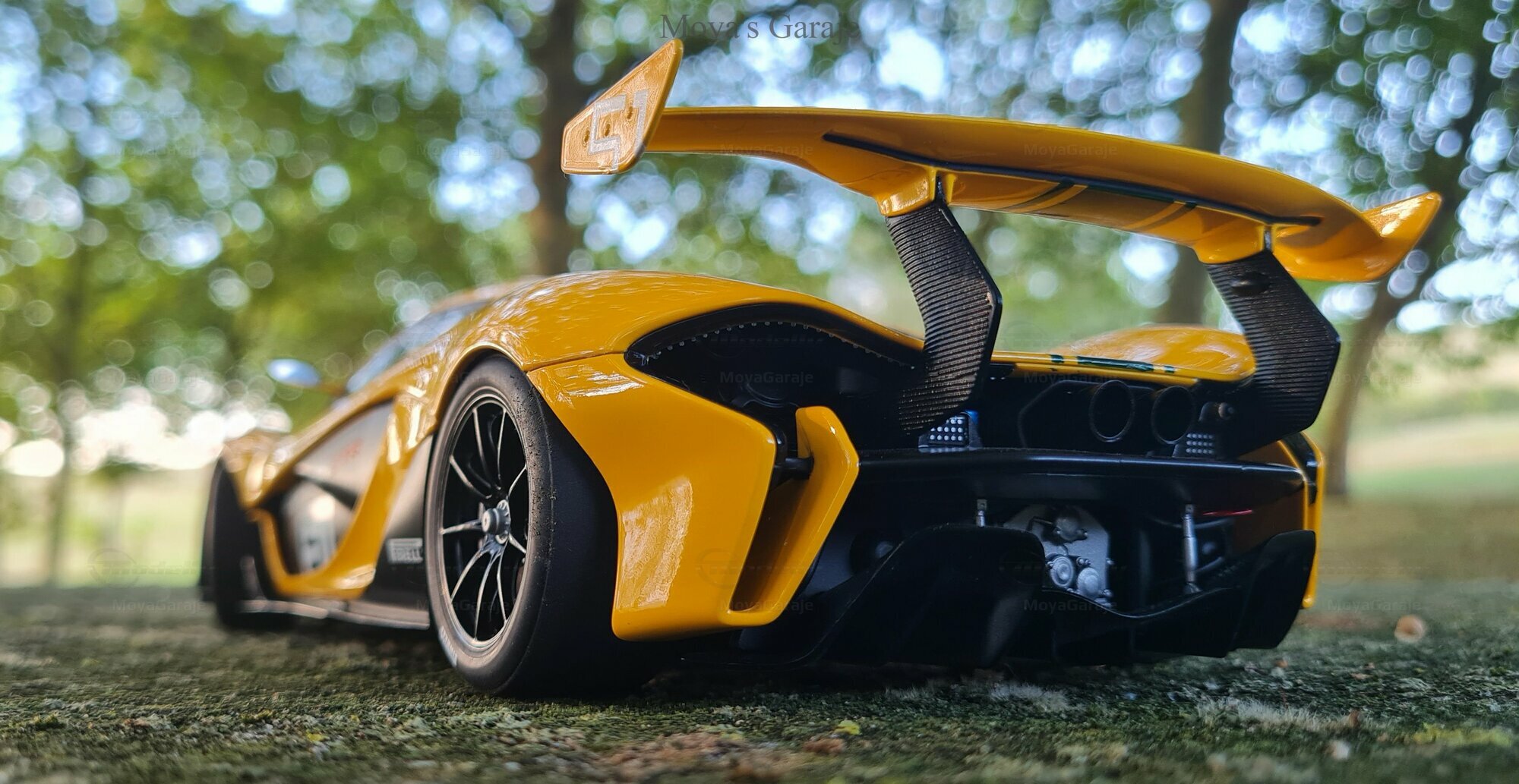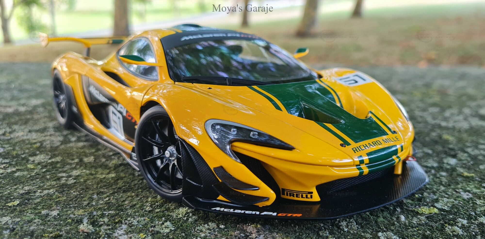 The McLaren P1 GTR model in a 1/18 scale by AUTOart presents a captivating representation of one of the most impressive supercars in history. It's evident that special attention has been paid to replicating the technical and aesthetic details, making the model particularly valuable for collectors. The captured photos by "MoyaGaraje" showcase the model in a natural setting, enhancing the meticulous details and realistic appearance of the vehicle even further. From the detailed brakes to the authentic air intakes and the distinctive rear wing, this model offers a comprehensive portrayal of an iconic vehicle.