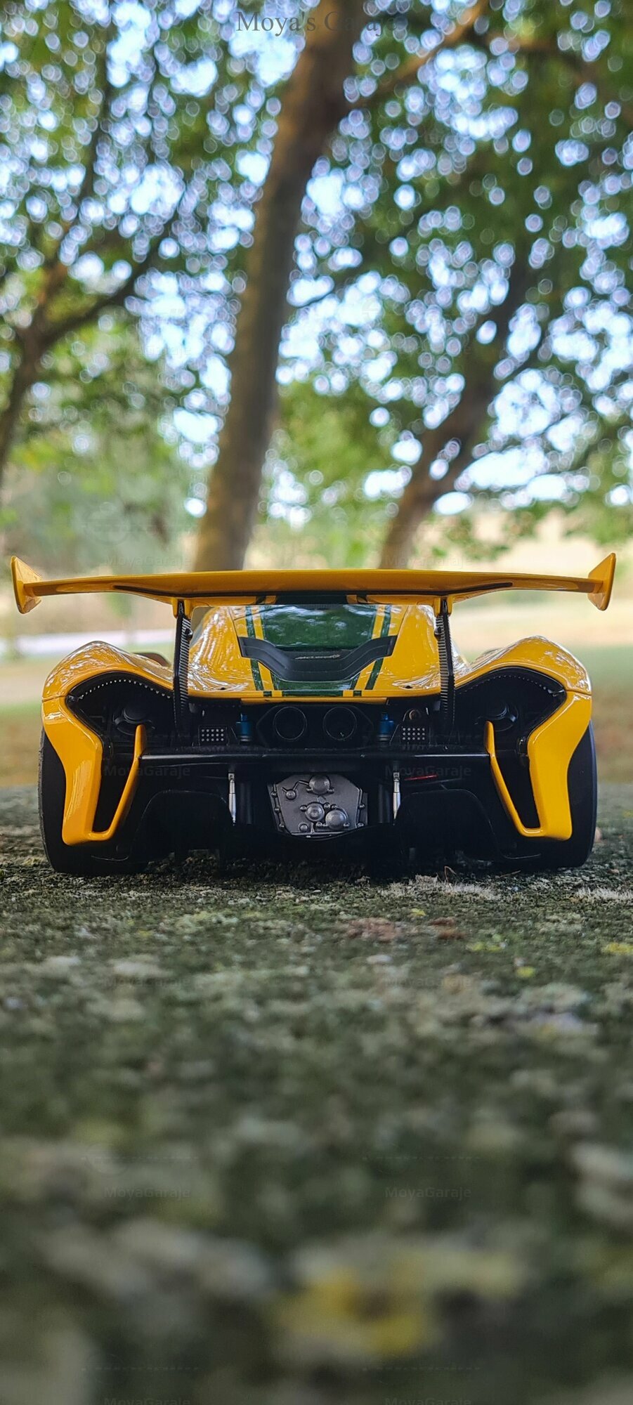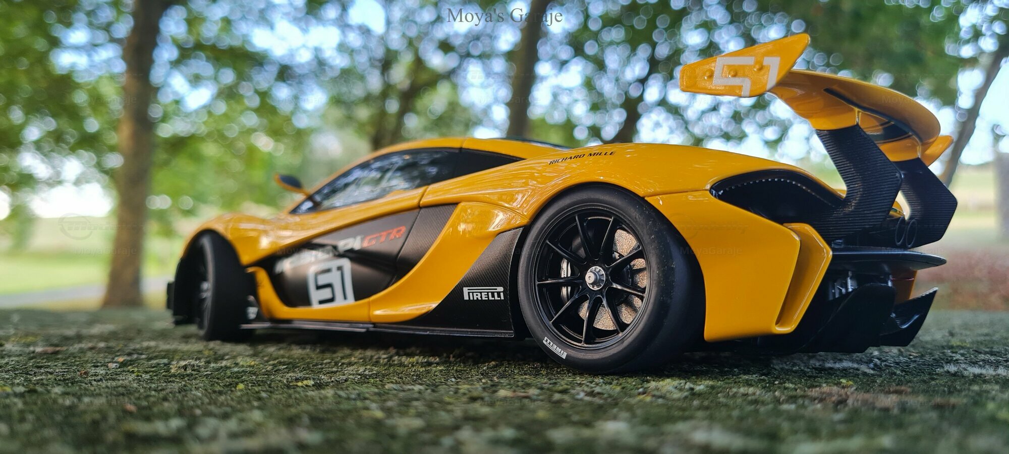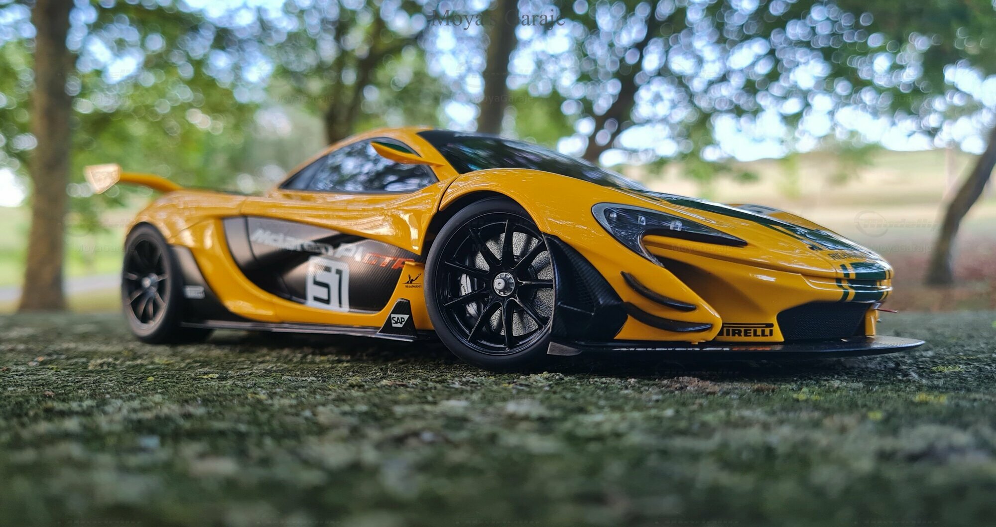 The McLaren P1 GTR model in a 1/18 scale by AUTOart presents a captivating representation of one of the most impressive supercars in history. It's evident that special attention has been paid to replicating the technical and aesthetic details, making the model particularly valuable for collectors. The captured photos by "MoyaGaraje" showcase the model in a natural setting, enhancing the meticulous details and realistic appearance of the vehicle even further. From the detailed brakes to the authentic air intakes and the distinctive rear wing, this model offers a comprehensive portrayal of an iconic vehicle.