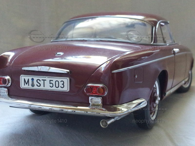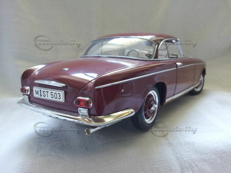 The pictured model version of the BMW 503 Coupé is a meticulously crafted model in the scale of 1/18 made by JADI Toys. In the collection of Modelly member "neophyte1410," this model holds a special place. The detailing of the model is remarkable, capturing interesting features that authentically reflect the original vehicle. The deep red finish captures the classic elegance of the BMW 503 Coupé, giving the model a distinct charm. Chrome elements like the bumpers, window frames, and side trim lend a striking look to the model. The model also showcases the characteristic taillights and the sleek silhouette that make the BMW 503 Coupé so unique. Even the wheels of the model are faithfully replicated, providing an authentic overall impression.