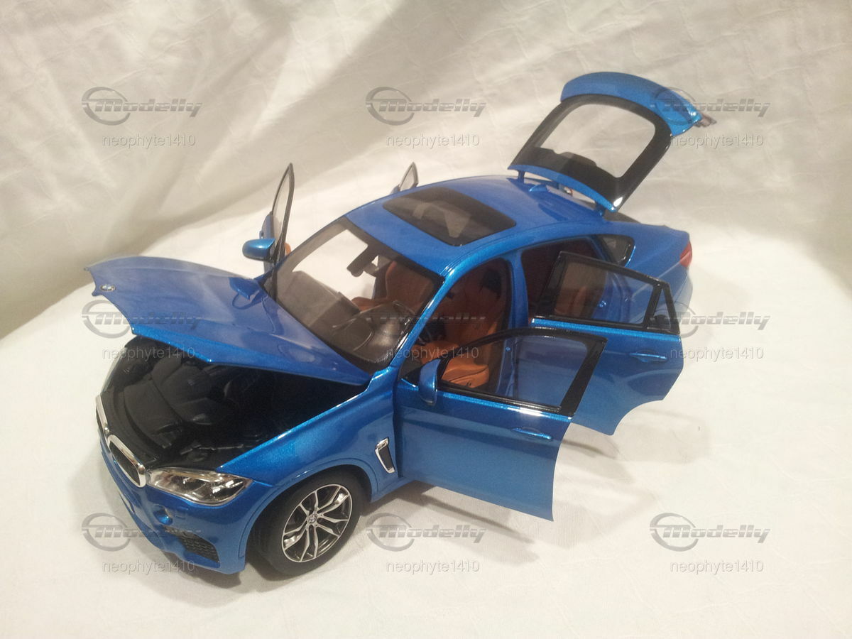 The model from the collection of "neophyte1410" is a highly detailed replica of the BMW X6 M (F86) in a 1/18 scale, crafted by the renowned manufacturer Norev. The model presents an extremely accurate representation of the original, evident in the precise rendering of smaller details such as the headlights, window frames, and exterior mirrors. The glossy blue paint finish gives the model a high resemblance to the original. The model's wheels also appear to be inspired by those of the original, contributing to the authentic look. Special attention has been paid to the M emblem in various places, including the front grille and the rear of the vehicle. The model offers movable parts such as doors and hood, which should delight collectors. Its precise craftsmanship and attention to detail make this model a sought-after collector's item.