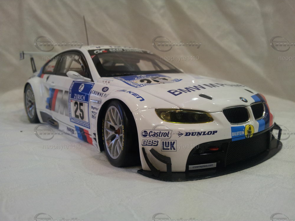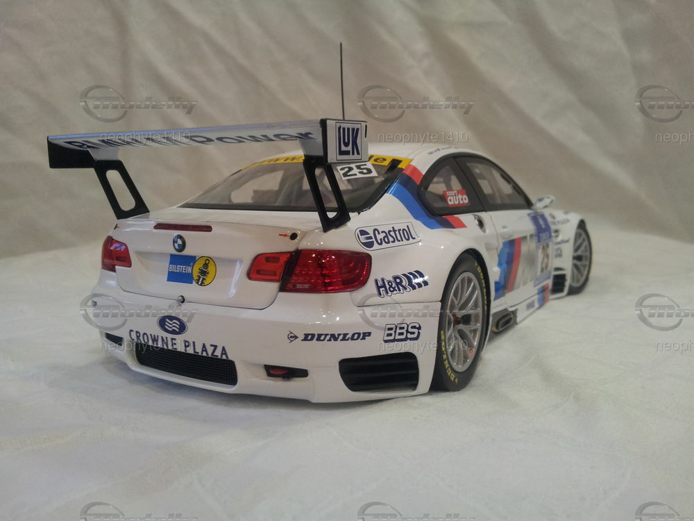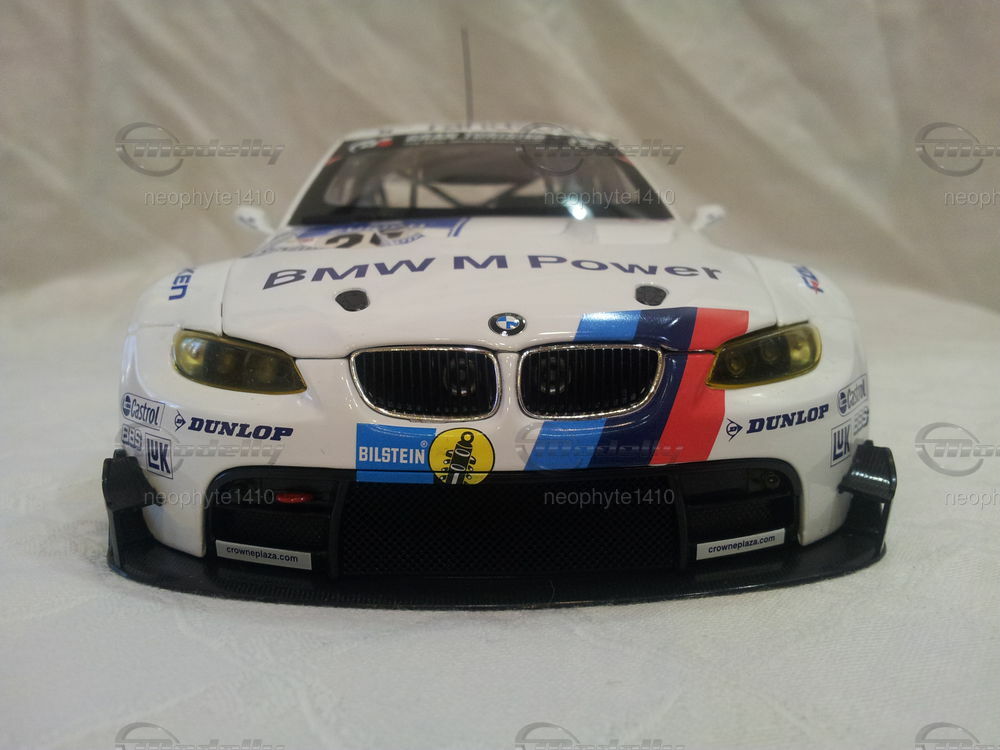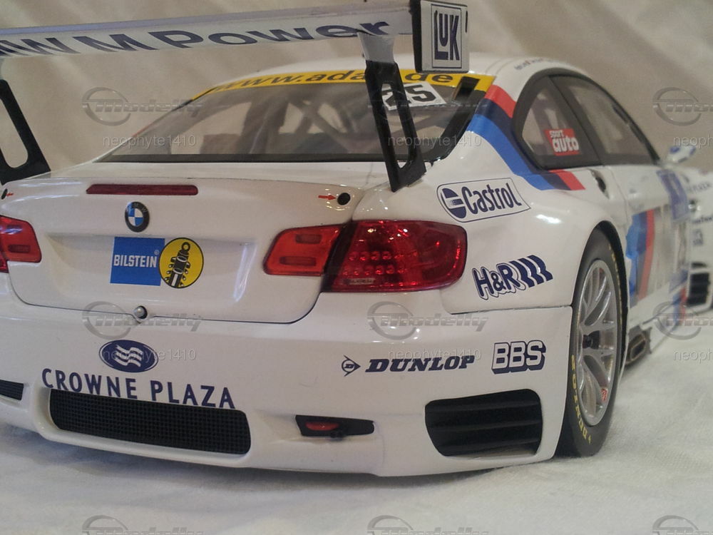 The livery of the BMW M3 GT2 is as impressive as its technical specifications. The car is painted in the typical BMW Motorsport colors - white with blue and red stripes. These colors represent BMW's long tradition in motorsport and are instantly recognizable. The car carries numerous sponsor logos, including prominent names like Dunlop, Castrol, and Crowne Plaza. The distinct color scheme and sponsor logos give the car a distinctive look on the racetrack.