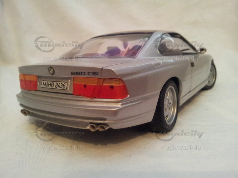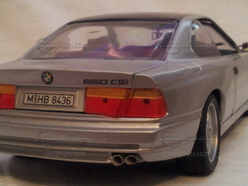 This 1/18 scale model car, manufactured by Revell, stands out for its attention to detail. The distinctive lines of the BMW 850 CSi are clearly recognizable. The three-door coupe features a metallic paint job that captures the shine of the original car. The interior of the model is also faithfully reproduced, including the seating arrangement and dashboard layout. The side mirrors, the typical shape of the hood, and the trunk lid with the prominent "850 CSi" lettering are accurately executed. Neophyte1410's collection is expanded with this historically significant model, offering model car enthusiasts the opportunity to admire the intricacies of this famous vehicle in detail.
