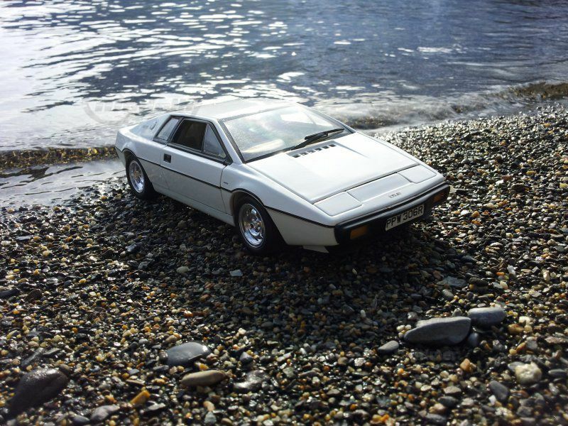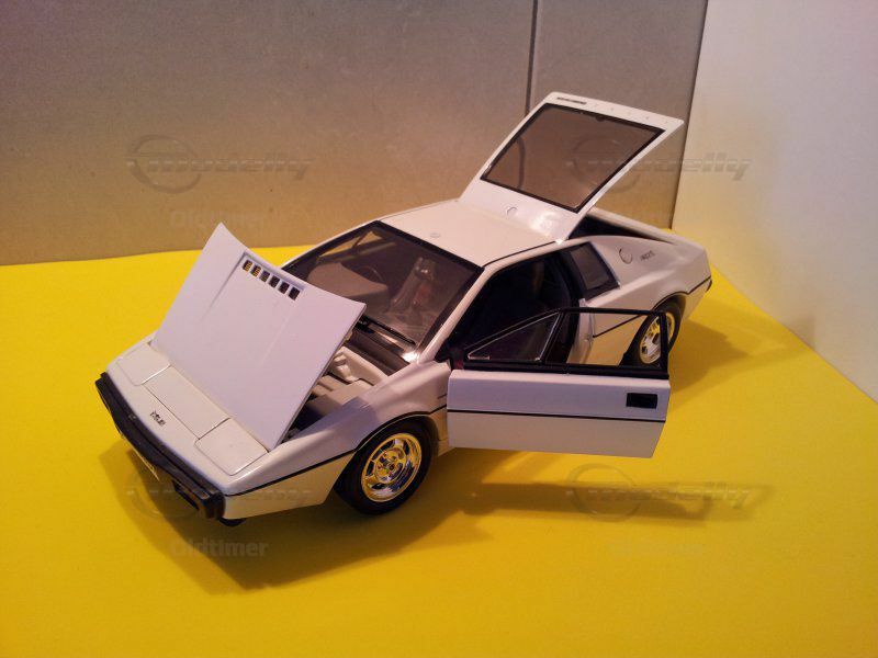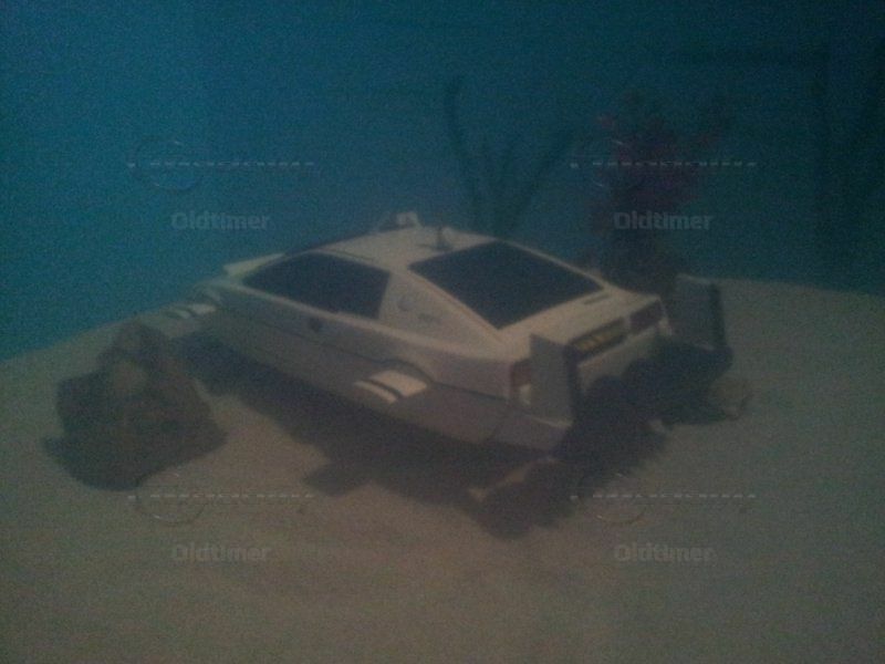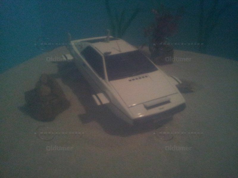 The model : Many of the known in the movie " gadgets " are incorporated . The wheels can be folded and a matching cap with " tail and fins " mounted . Cover flap for underwater mines is also available.