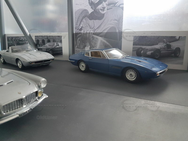The first 6 photos are my realization in scale 1:18 from the Maserati special show of the museum "Pantheon" in Basel. The following 5 photos are the "template" so photos of the original exhibition.
