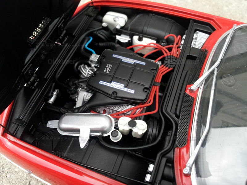 The front -seated 8 -cylinder engine with 2.6 liter displacement and 200 hp rendered comes from the Alfa racing car Tipo 33rd