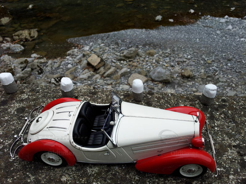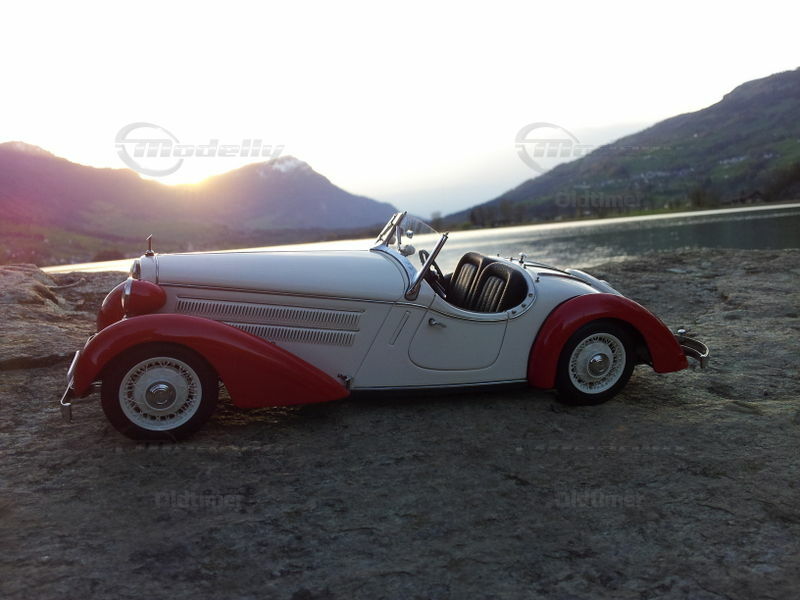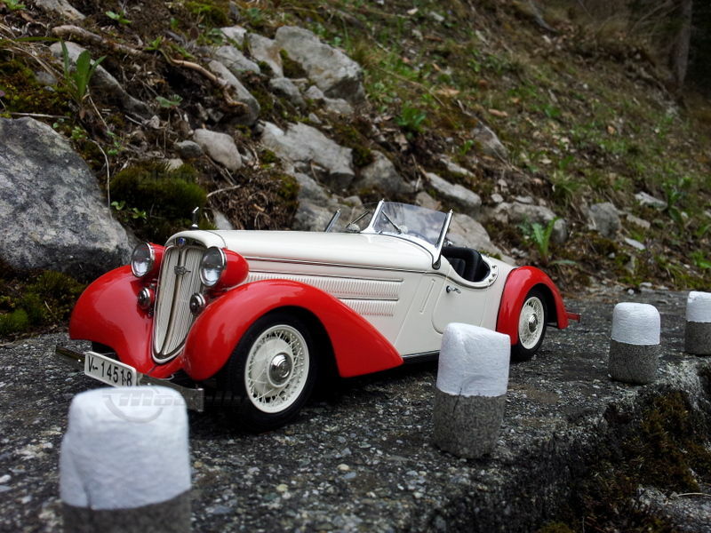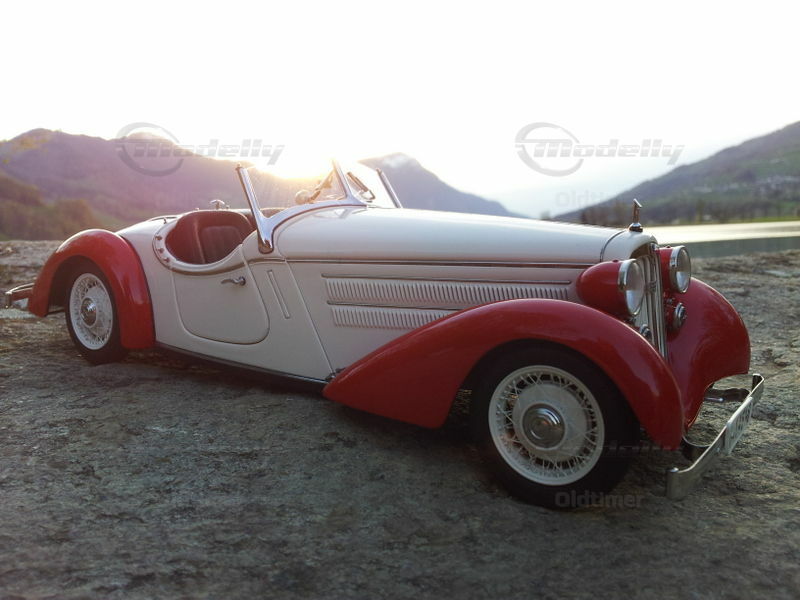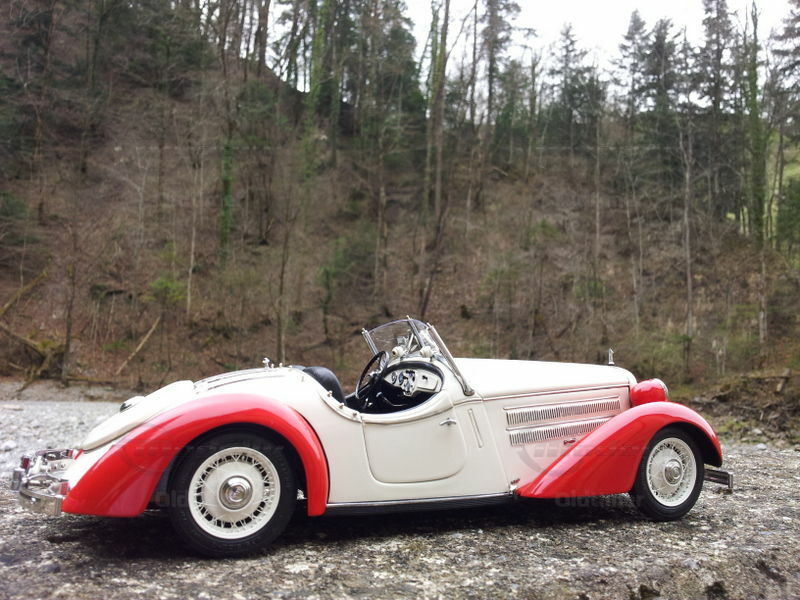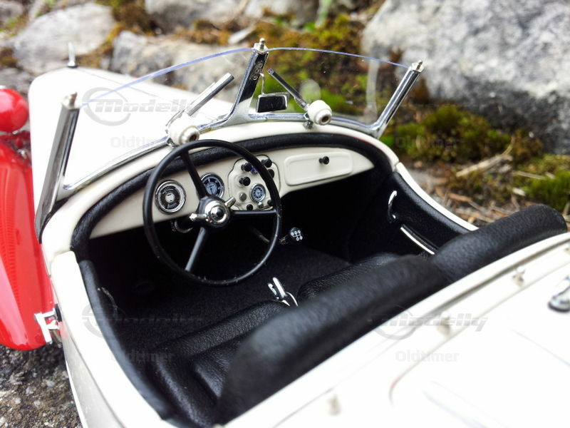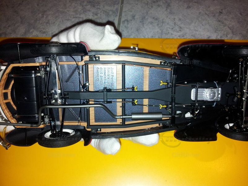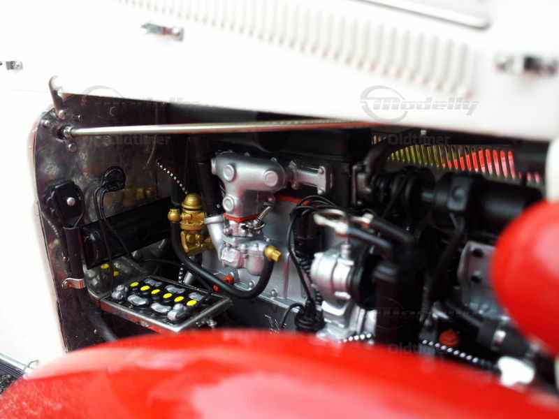 A masterpiece of CMC from over 1700 parts. The engine range is perfectly reproduced, the seats (of course with CMC) made of leather, the spare wheel under the cover can be unscrewed, and even the smallest details such as the complete fitting under the vehicle is modeled (incl. Leather straps to secure the cable and thumbscrews in the Cabling).