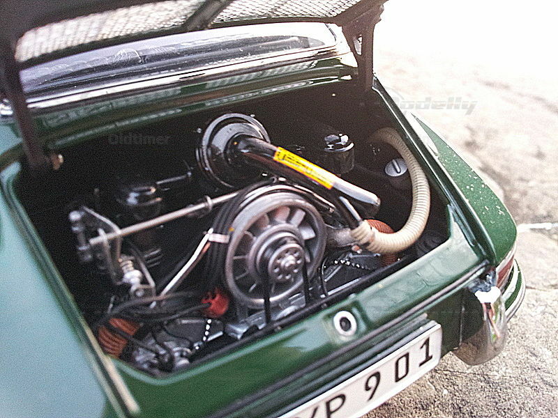 Excellent precision and an incredible amount of detail . To name a few : Genuine cloth / leather seats , folding sun visor with mirror , to open the fuel filler flap , removable carpet under the hood with a likewise removable spare wheel . Detachable wheels etc .....