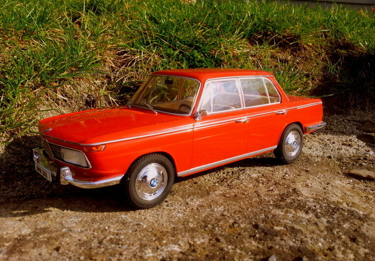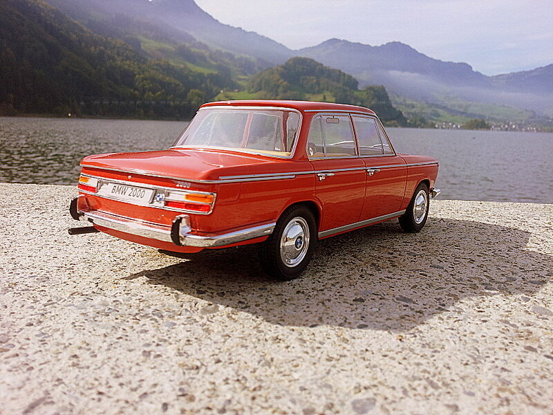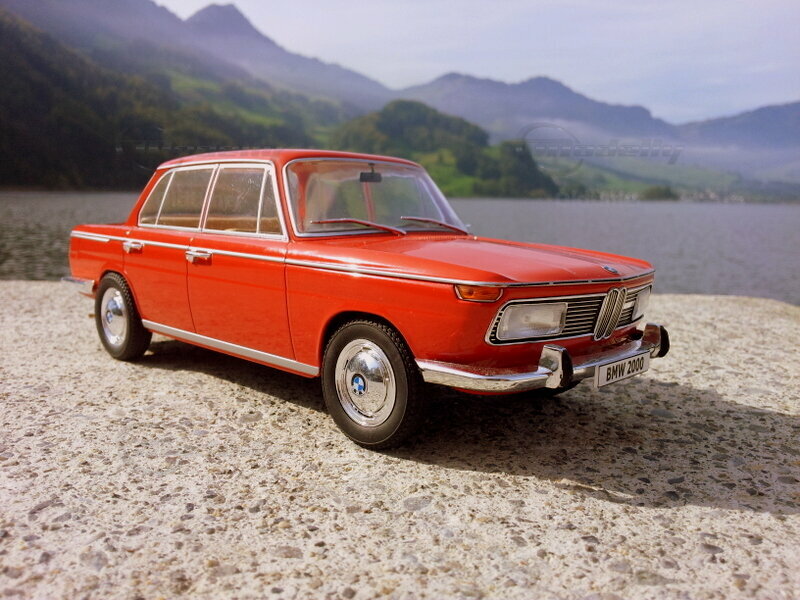 The scale model of the BMW 2000 from MCG in 1/18 scale is a remarkable replica that delights collectors around the world. This miniature model is made of diecast material and showcases the attention to detail and quality one would expect from a high-quality model. The model's paintwork is in a vibrant red, faithfully capturing the aesthetics and charm of the original. Particularly noteworthy are the well-crafted chrome details on the bumper and side trim, enhancing the nostalgic look of the vehicle. A close inspection reveals finely crafted mirrors, door handles, and even the intricate spoke design on the wheels, enhancing the model's realistic character. This model is part of the collection of Modelly member "Oldtimer" and represents a valuable addition for any classic car model enthusiast.