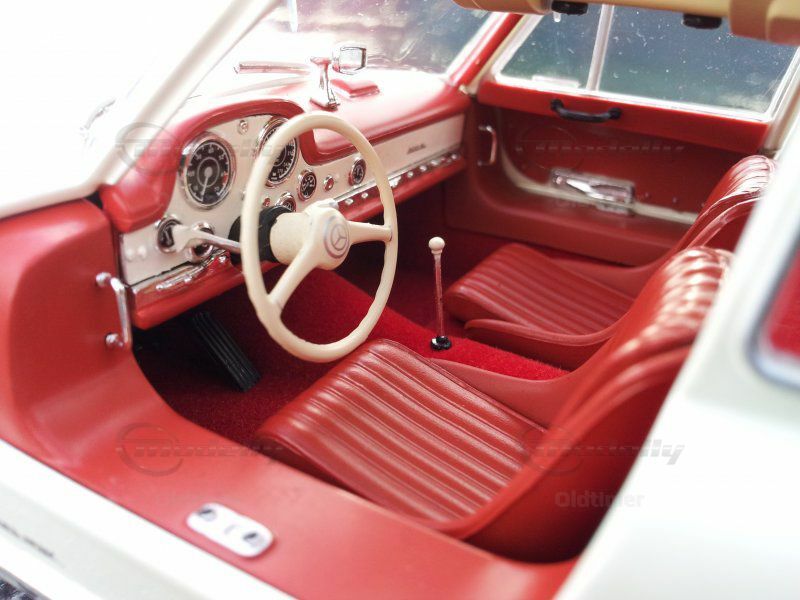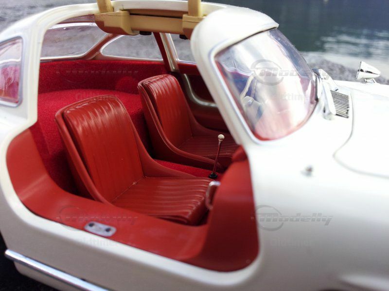Very nicely implemented by the company Minichamps. The white version shown is a limited edition. The mechanism of the doors is very well resolved. The doors can be opened well, but keep also very nice in the open position. The engine is perfectly implemented and the interior
