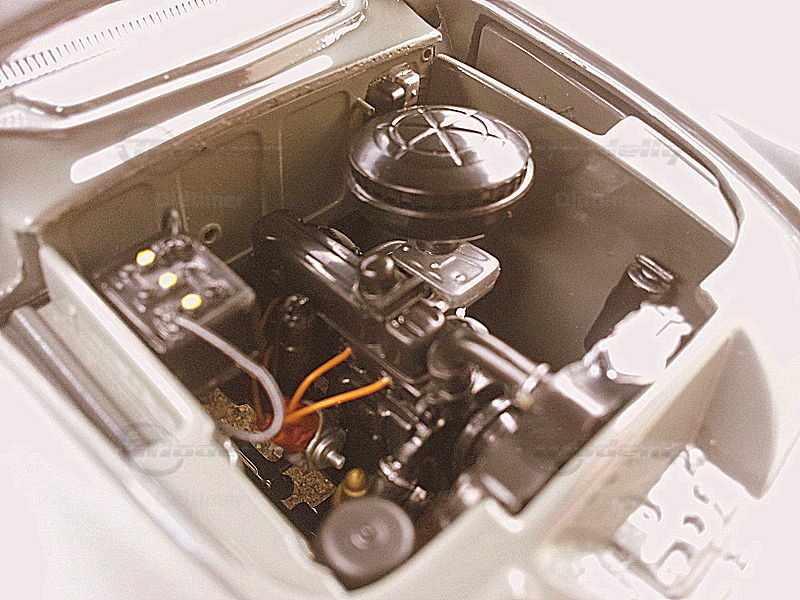Simple, but very nicely implemented by Minichamps. The basic shape is already a bit older, what you see among other things on the hinges of doors and hoods. The paint is very good and the interior is well done. The engine is also really well reproduced.