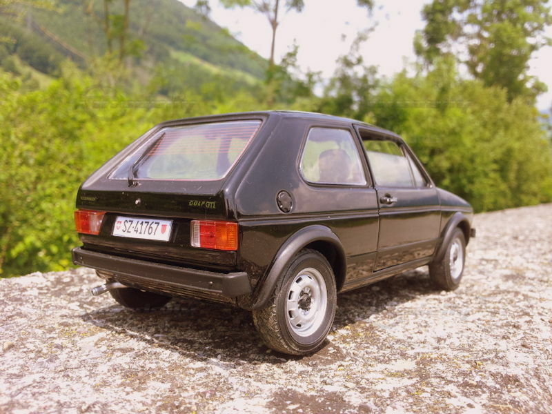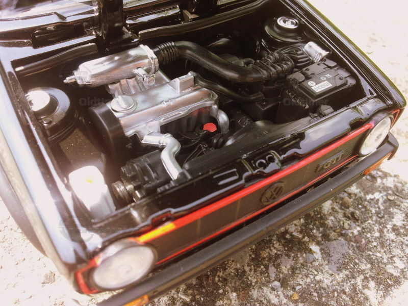 Characteristic of the GTI were the red bordered radiator grille and a black bordered rear window. In addition, there was a real golf ball as a shift knob.