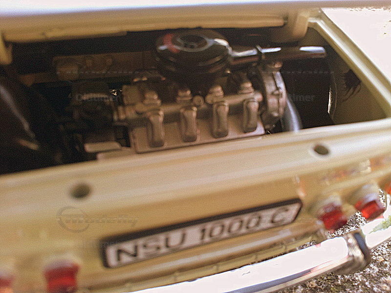 Simple but beautifully implemented Revell model. The shape of this model comes from the year 2001. Again, a proof that Revell has built very very early "very good models. The doors sit on small hinges and the gap mass is pleasingly low. The interior is exemplary true "Spartan" but since properly implemented. The engine in the rear is also quite simple but good. The "trunk" front can not be opened.