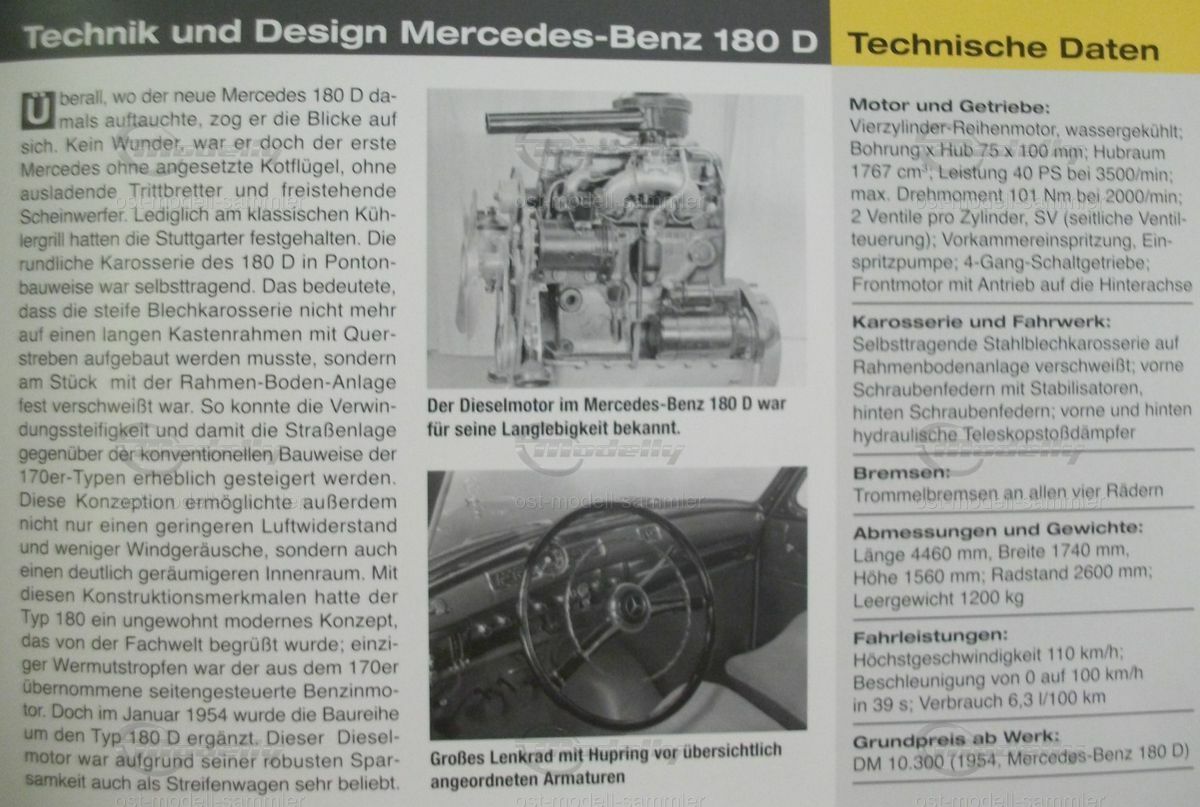 Mercedes-Benz 180 D(diecast 1:43, atlas verlag / IXO / IST)