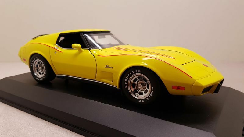 Some of the unique features of this 1/18 scale miniature include specific decals and possibly customized parts that make the model one-of-a-kind. The model's wheels are in a glossy finish, indicating high-quality tires from Goodyear. The rear spoiler adds a sporty touch and highlights the dynamic lines of the vehicle. Such modified miniatures are particularly sought after by collectors as they represent a unique piece through personal customizations. This model allows model car collectors to experience the history and technical details of the Chevrolet Corvette C3 in a unique way.