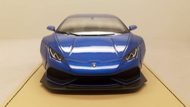 The model car shown here is a 1/18 scale replica of the Lamborghini Huracán, manufactured by MR Collection. This miniature model represents a remarkable rendition of the original and is proudly displayed in the collection of Modelly member "Phat-T". The model car is made of resin, a material known for its ability to reproduce fine details with high precision. The resin construction allows even the smallest features of the real vehicle to be replicated, which is appreciated by enthusiasts and collectors alike.