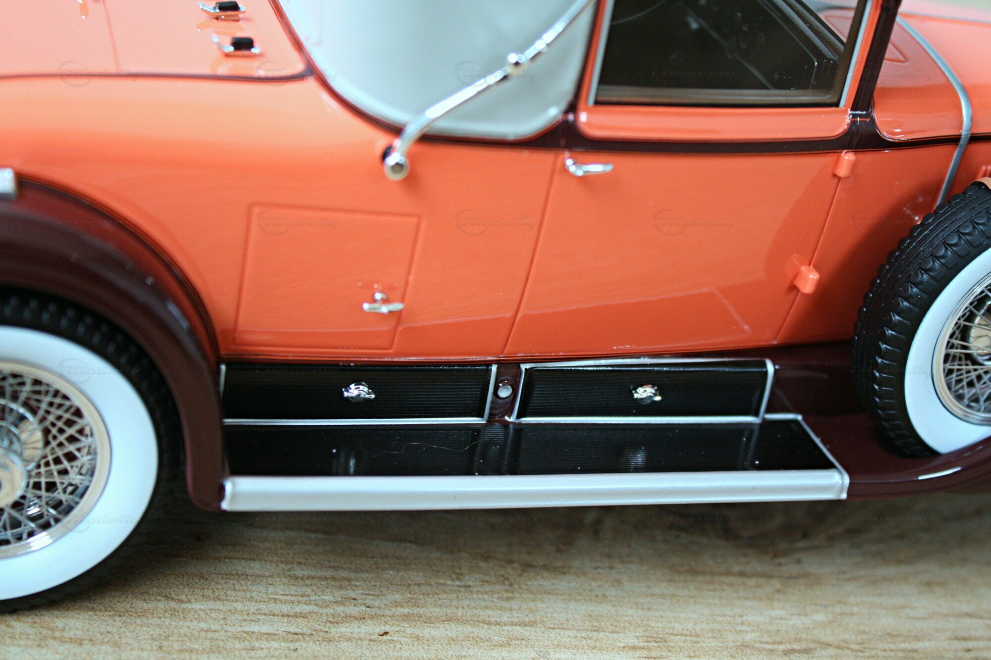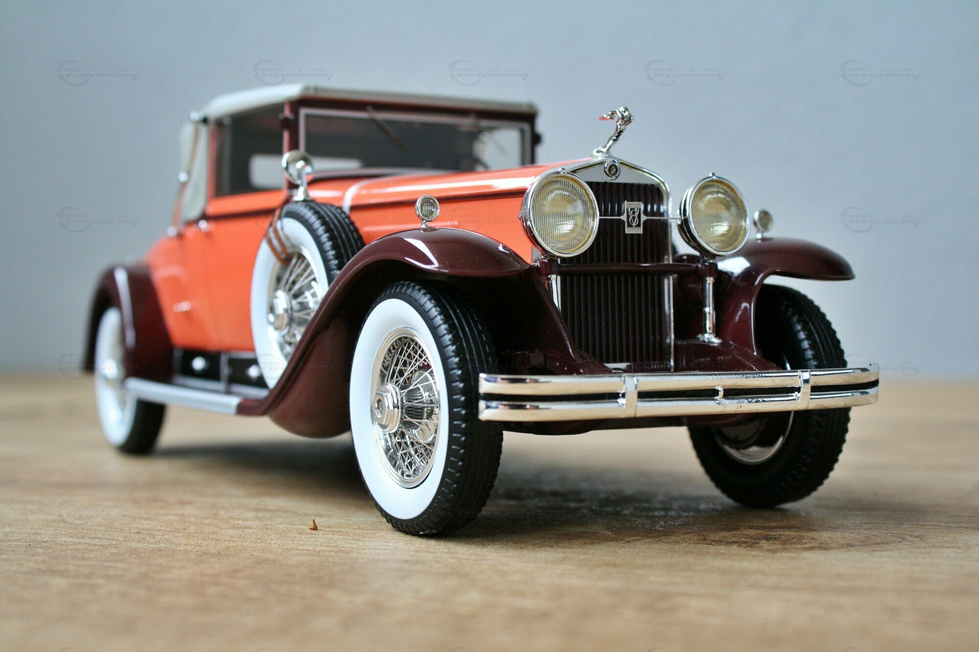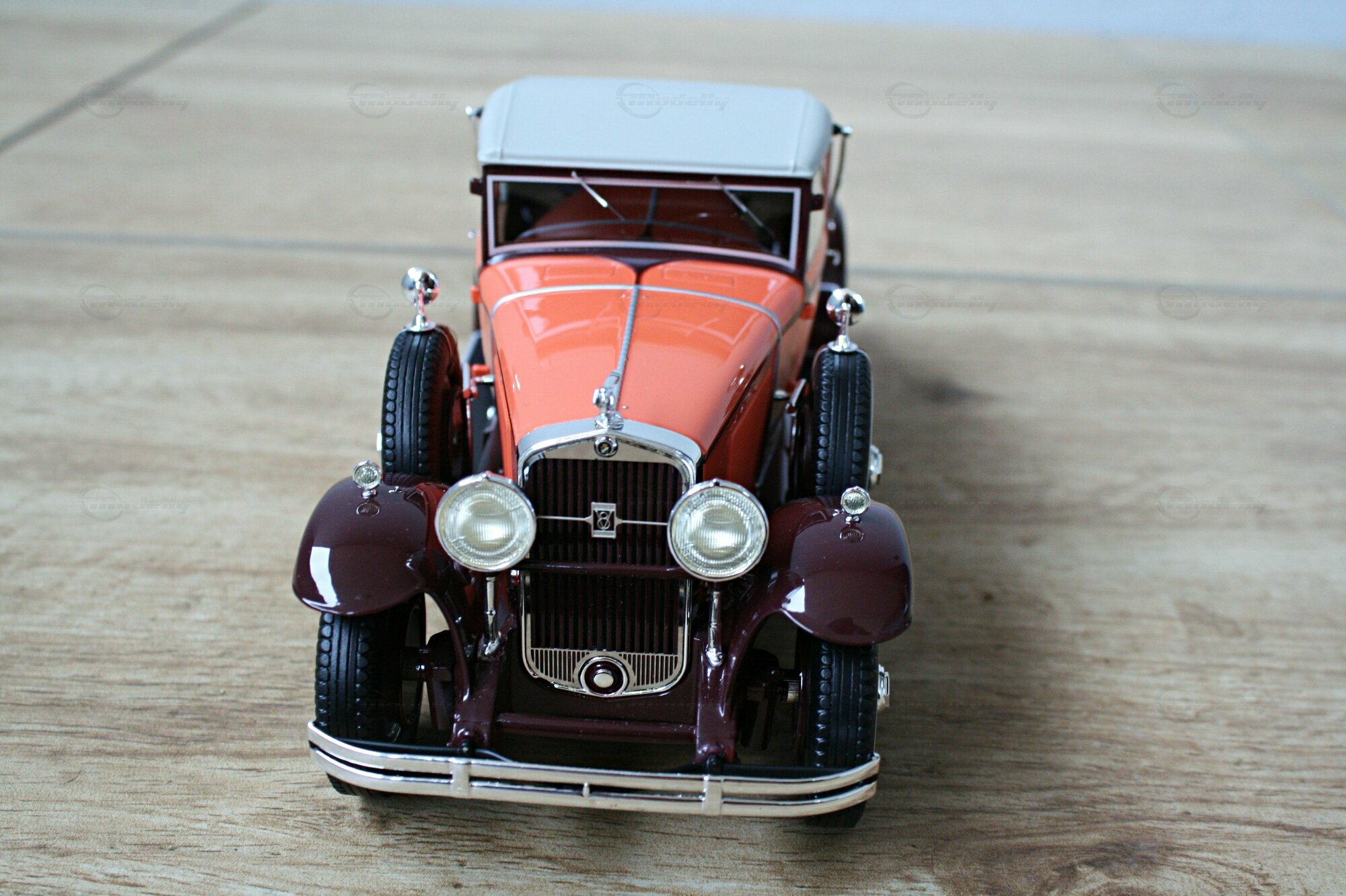 This 1/18 scale miniature model, manufactured by BoS, is a faithful replica of the original Cadillac 341 B Convertible Coupé. Careful attention to detail has been paid, appealing to collectors. The model is made of resin, a material allowing precise detail representation. The intricate chrome details, fine tire textures, and accurate interior are just some aspects that distinguish this model. The spoke wheels with white tires, highly esteemed in the collector community, also stand out. Modelly collectors, especially member "Play-X," highly appreciate this model and proudly add it to their collection.