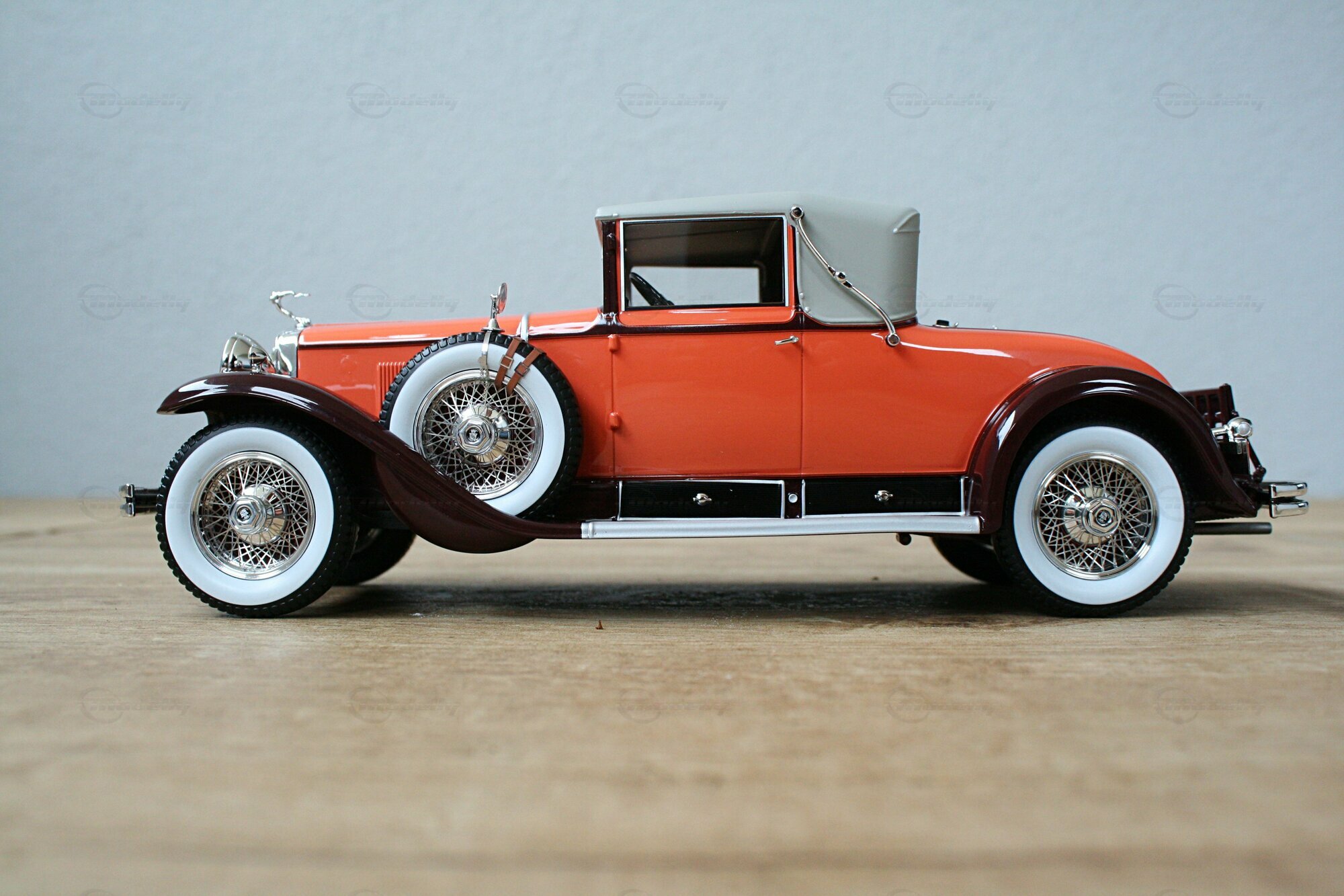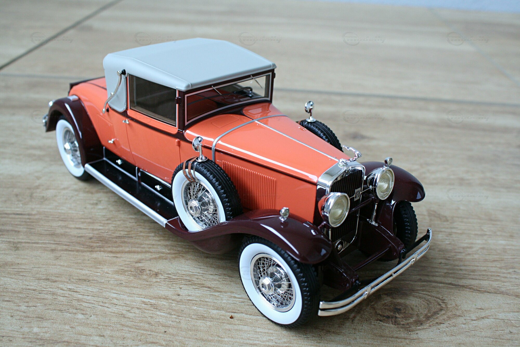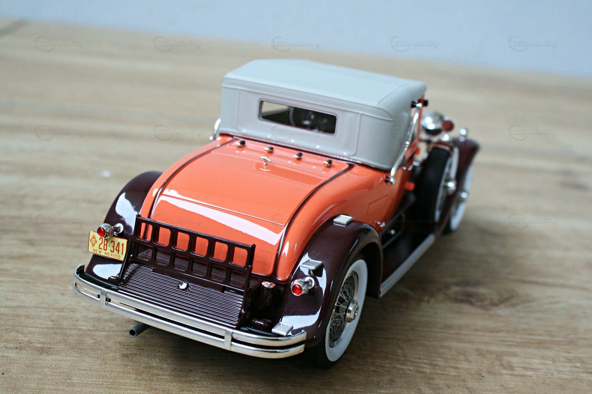 This 1/18 scale miniature model, manufactured by BoS, is a faithful replica of the original Cadillac 341 B Convertible Coupé. Careful attention to detail has been paid, appealing to collectors. The model is made of resin, a material allowing precise detail representation. The intricate chrome details, fine tire textures, and accurate interior are just some aspects that distinguish this model. The spoke wheels with white tires, highly esteemed in the collector community, also stand out. Modelly collectors, especially member "Play-X," highly appreciate this model and proudly add it to their collection.