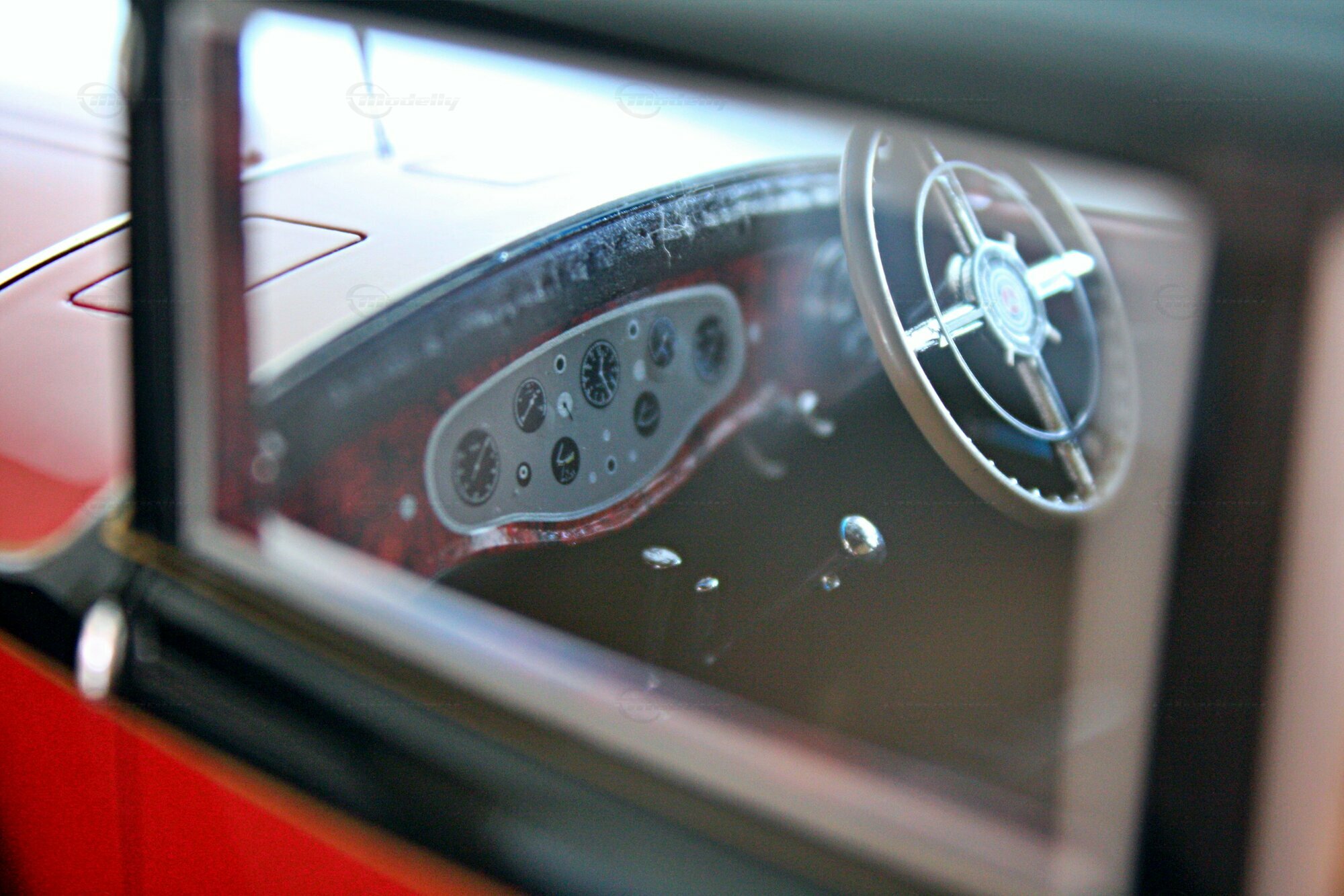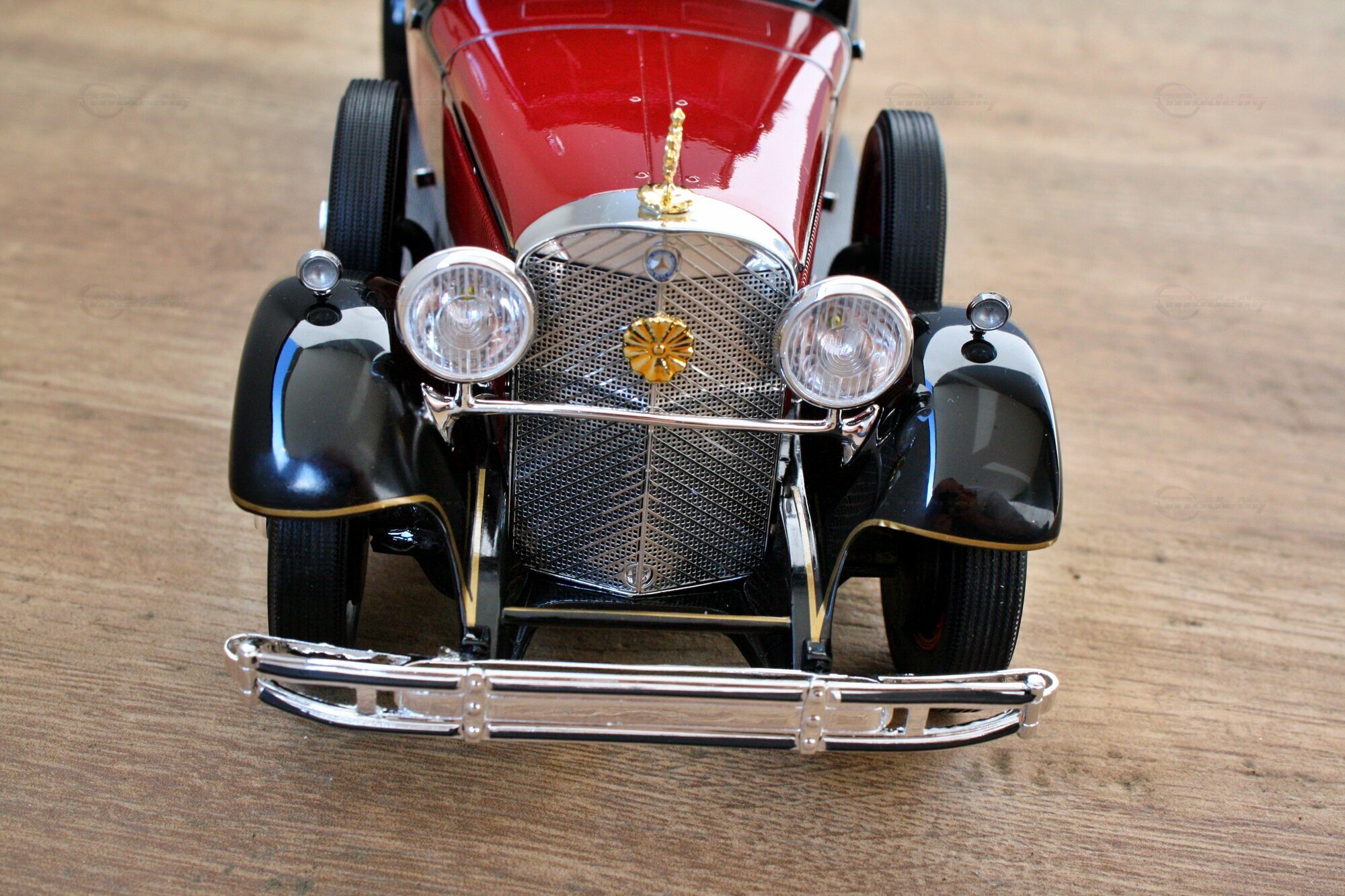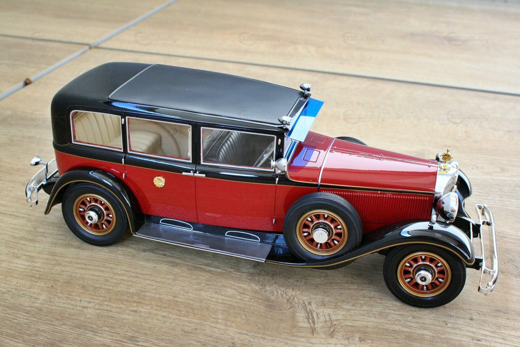 The 1/18 scale model shown here was manufactured by CMF and is made of high-quality resin. It depicts the detailed replica of the Mercedes Benz 770 Pullman Limousine. This model is part of the collection of a Modelly member named "Play-X" and is characterized by its outstanding attention to detail. In the pictures, you can see the precise replication of various elements of the original. The model's paint scheme is an impressive combination of black and red, giving the model an authentic and elegant look. The gold accents and finely crafted gloss finish further contribute to its luxurious appearance.